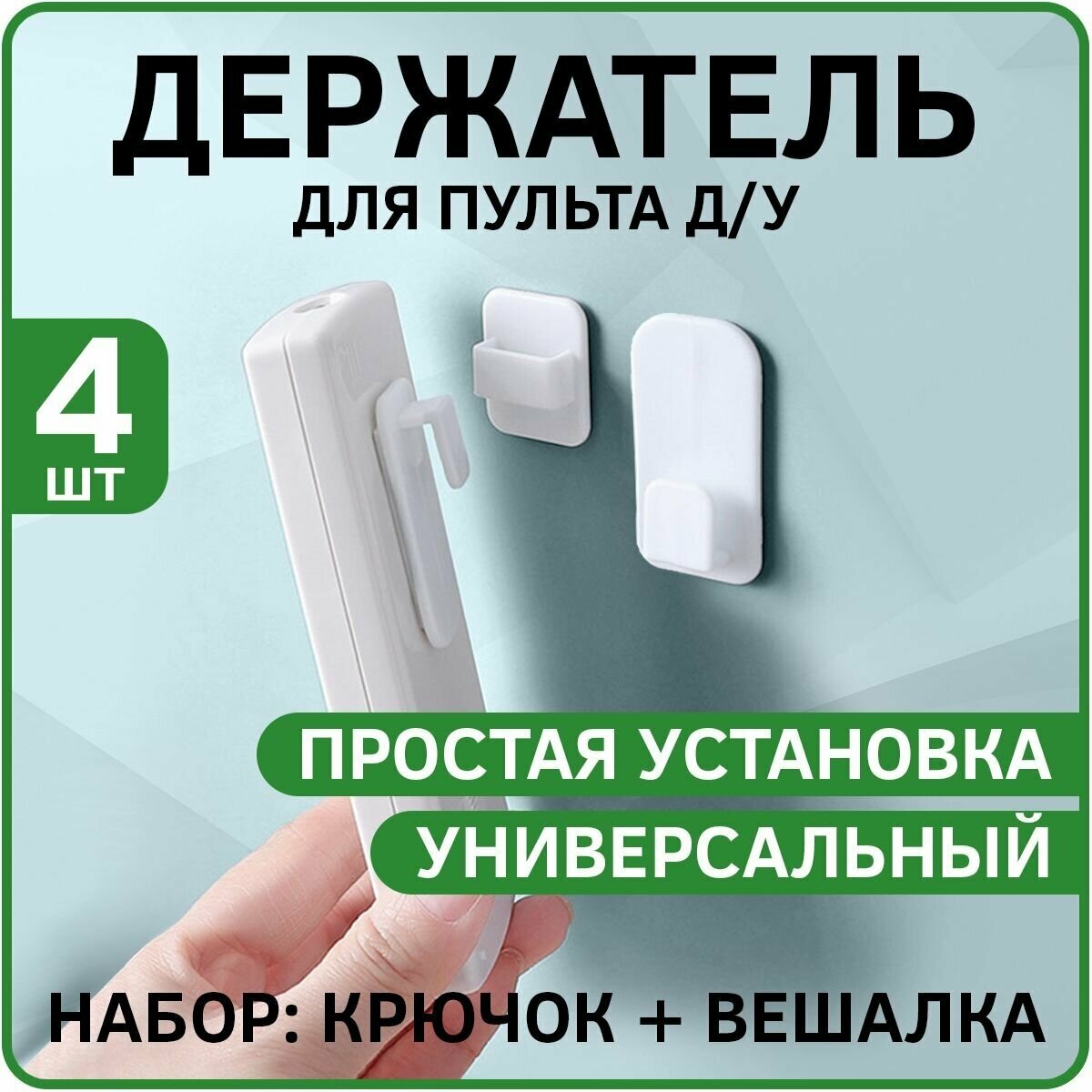 Набор 4шт - Держатель для пульта Д/У Remote Control Holder (Набор крючок + вешалка) (Белый) интересное: