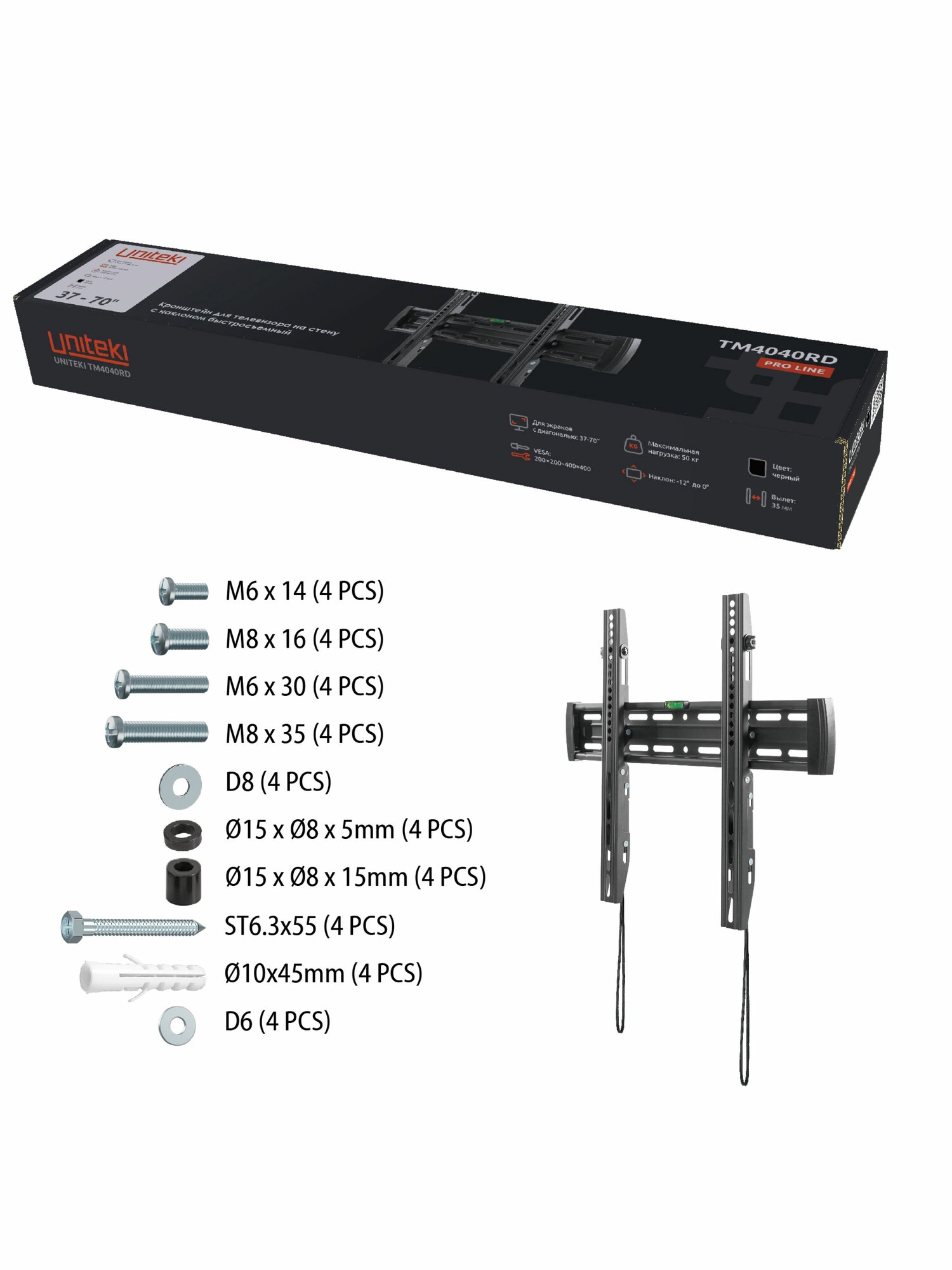 Кронштейн для телевизора на стену с наклоном UNITEKI TM4040RD черный диагональ 37-70 дюймов, быстросъемный с удобными барашками регулирующими наклон интересное: