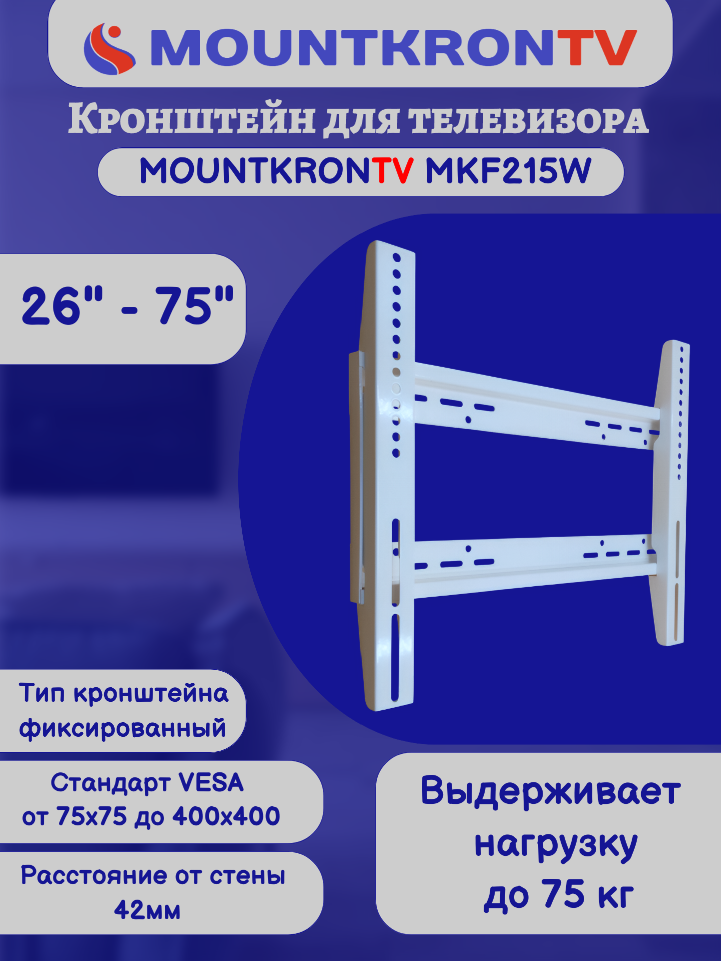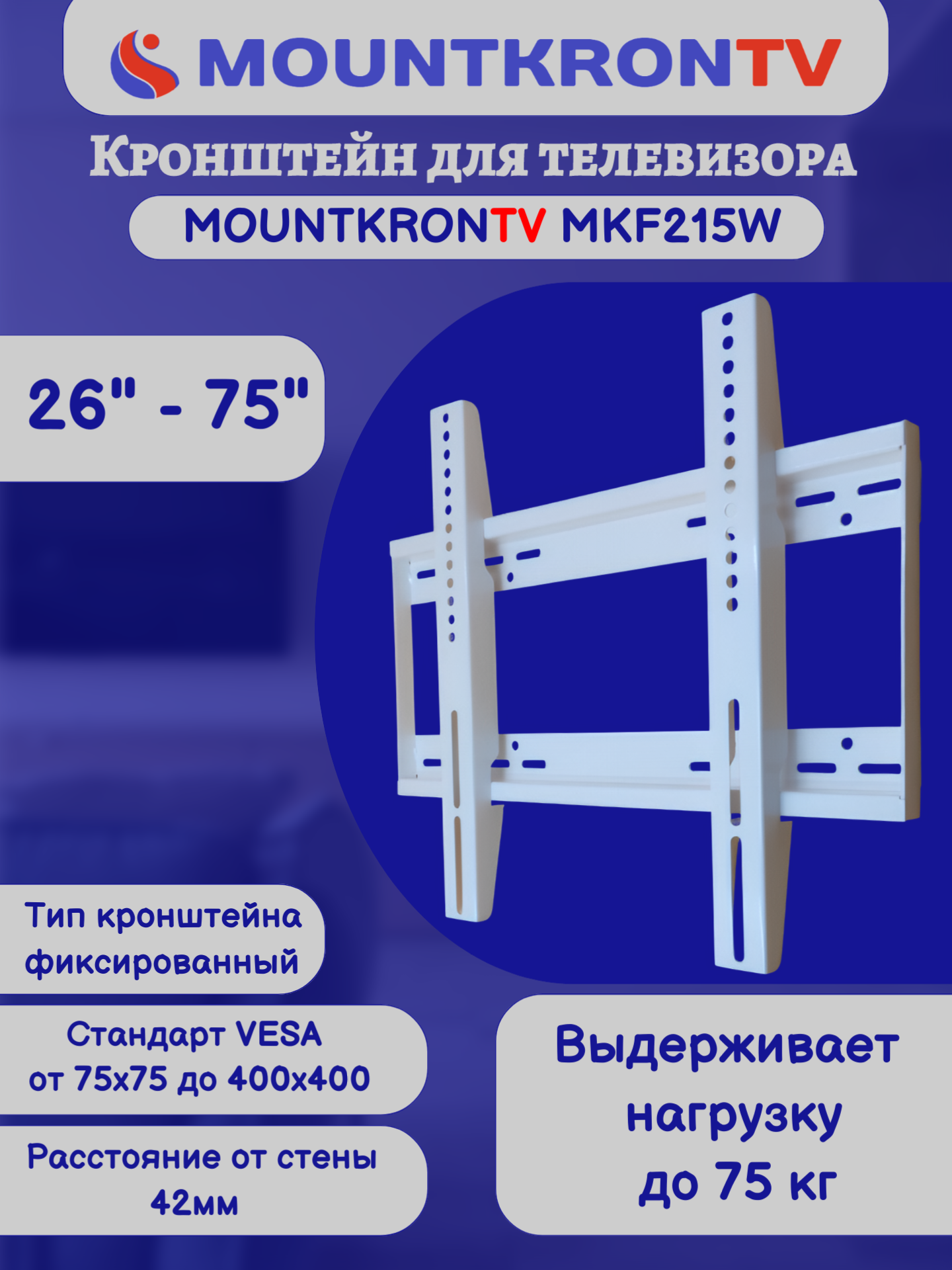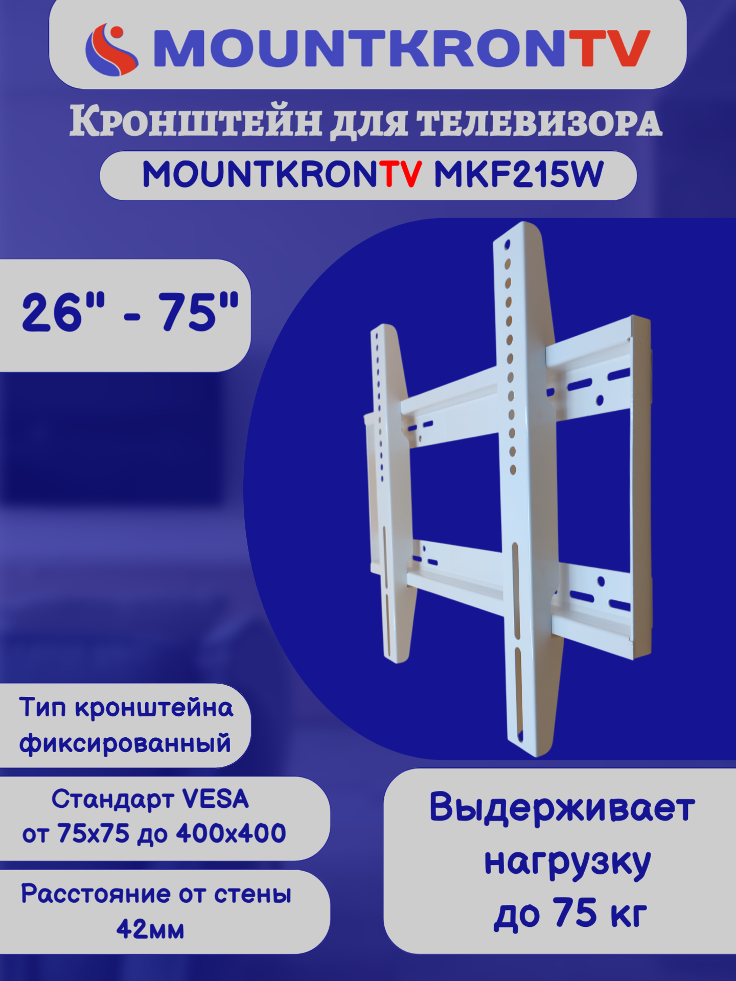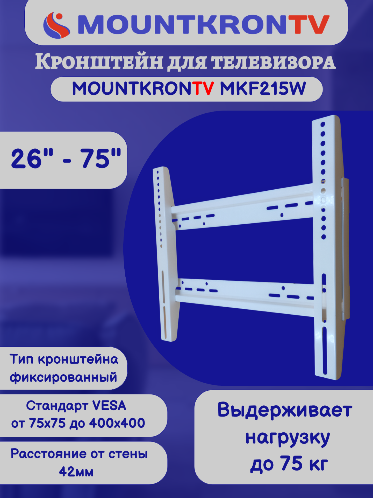 Купить Кронштейн для телевизора MOUNTKRONTV MKF215W на стену, фиксированный, диагональ 26"-75", белый