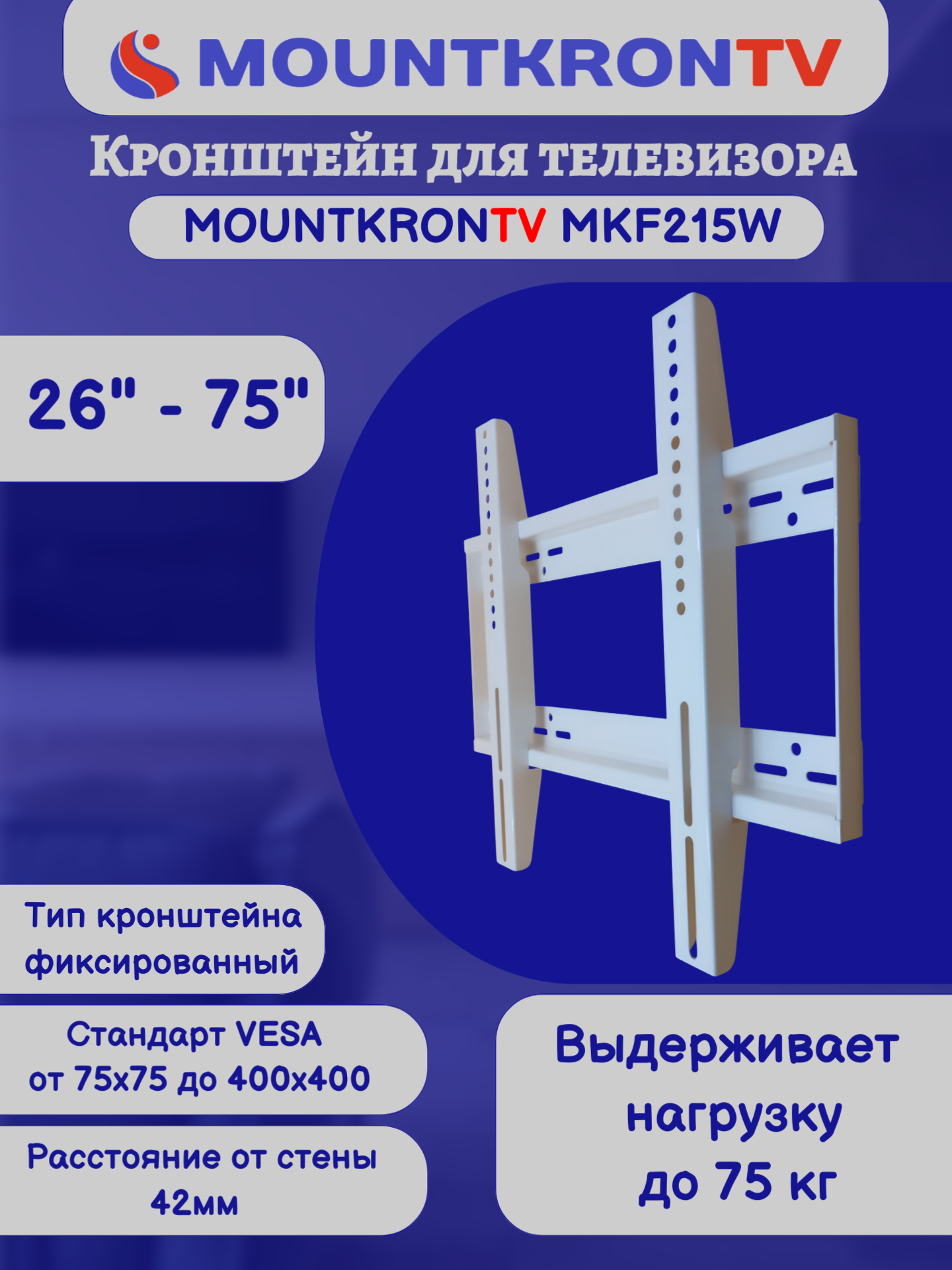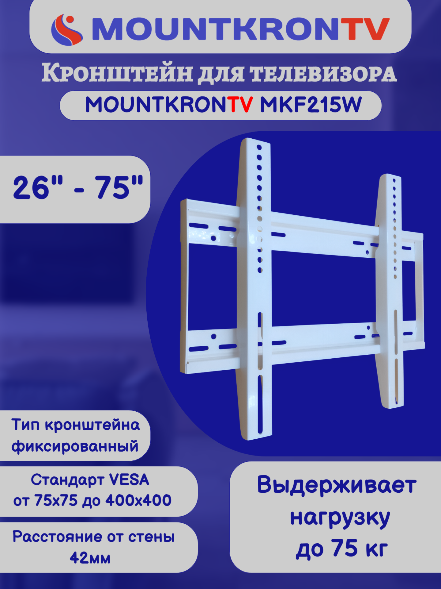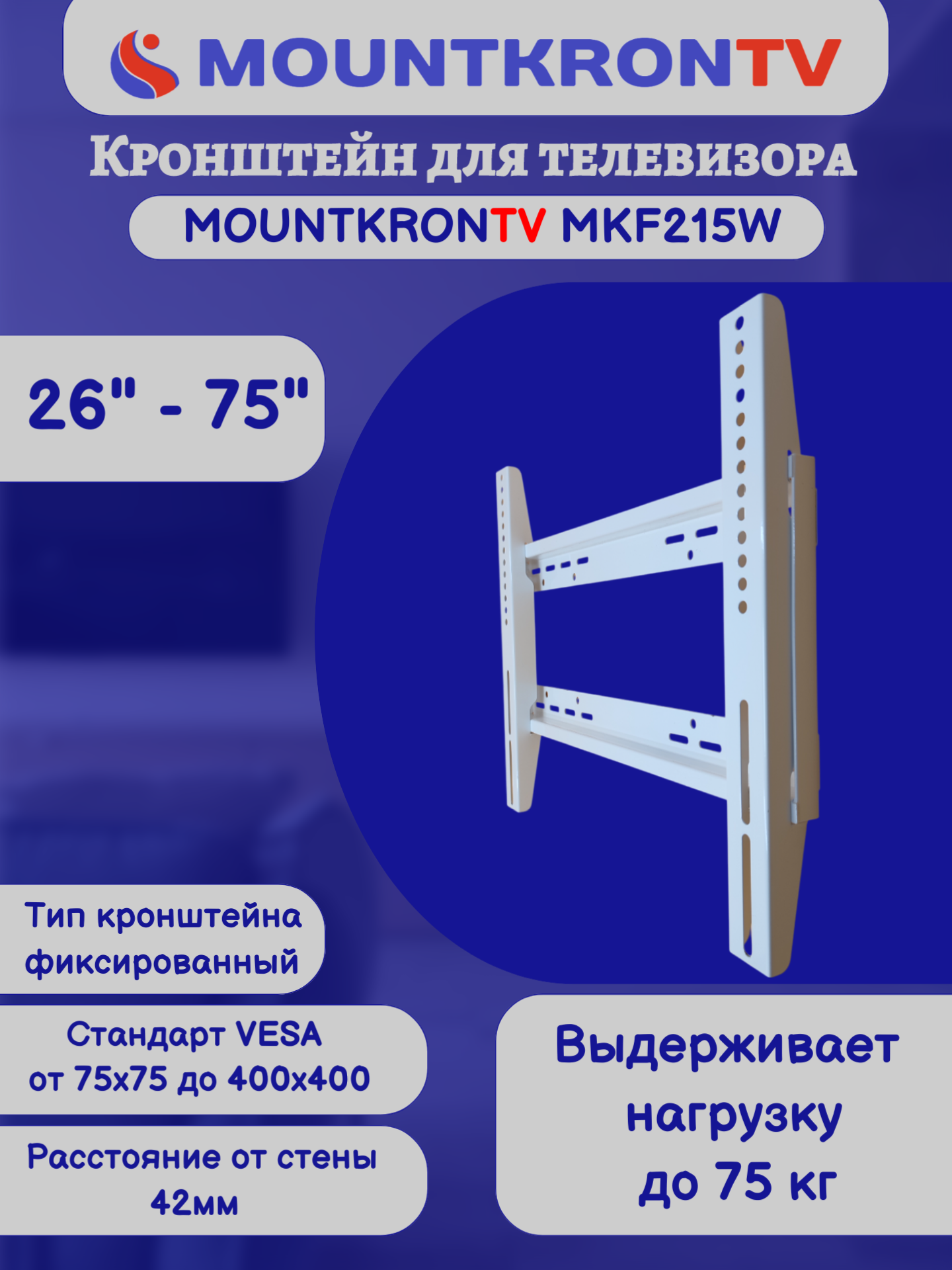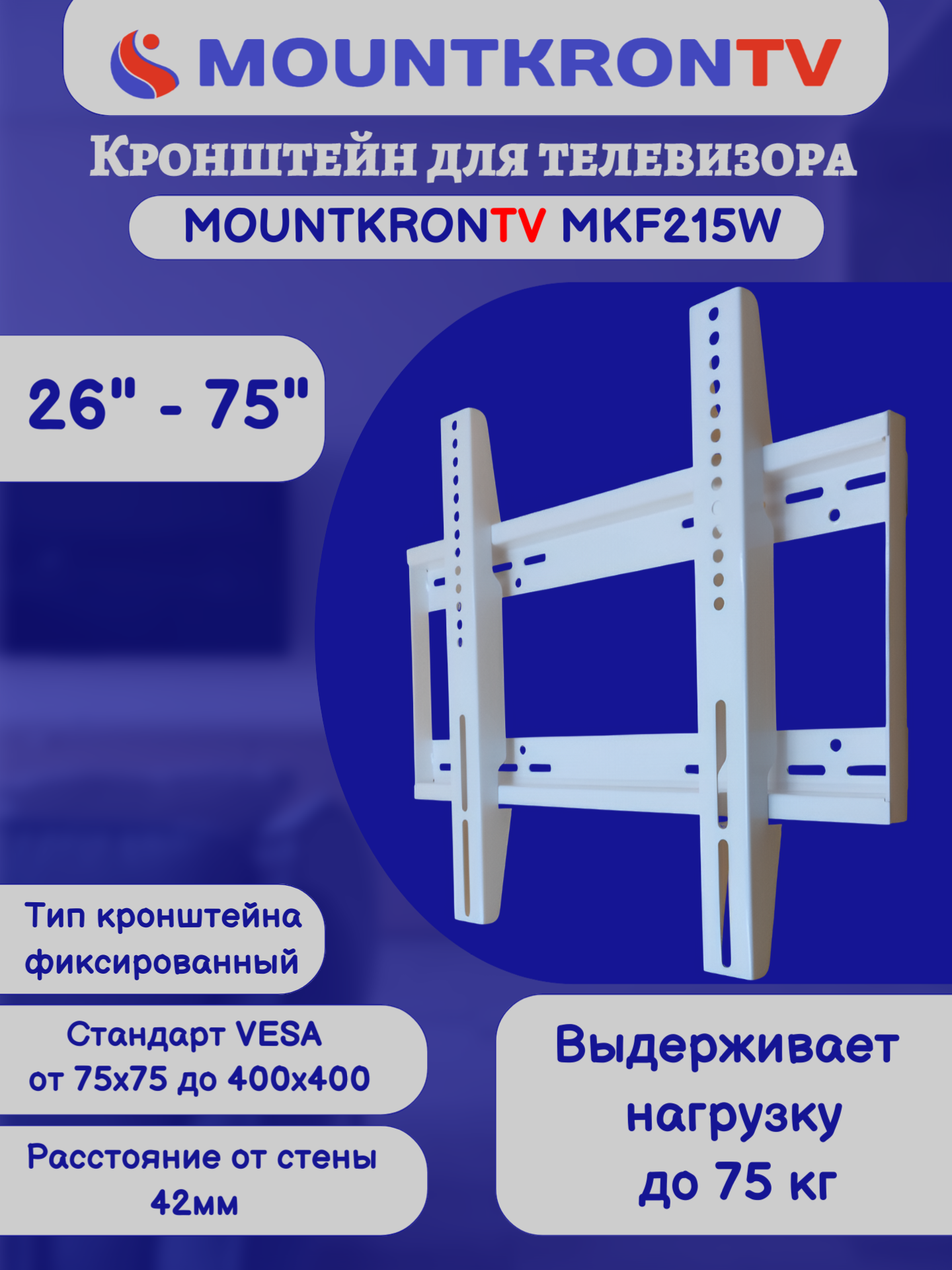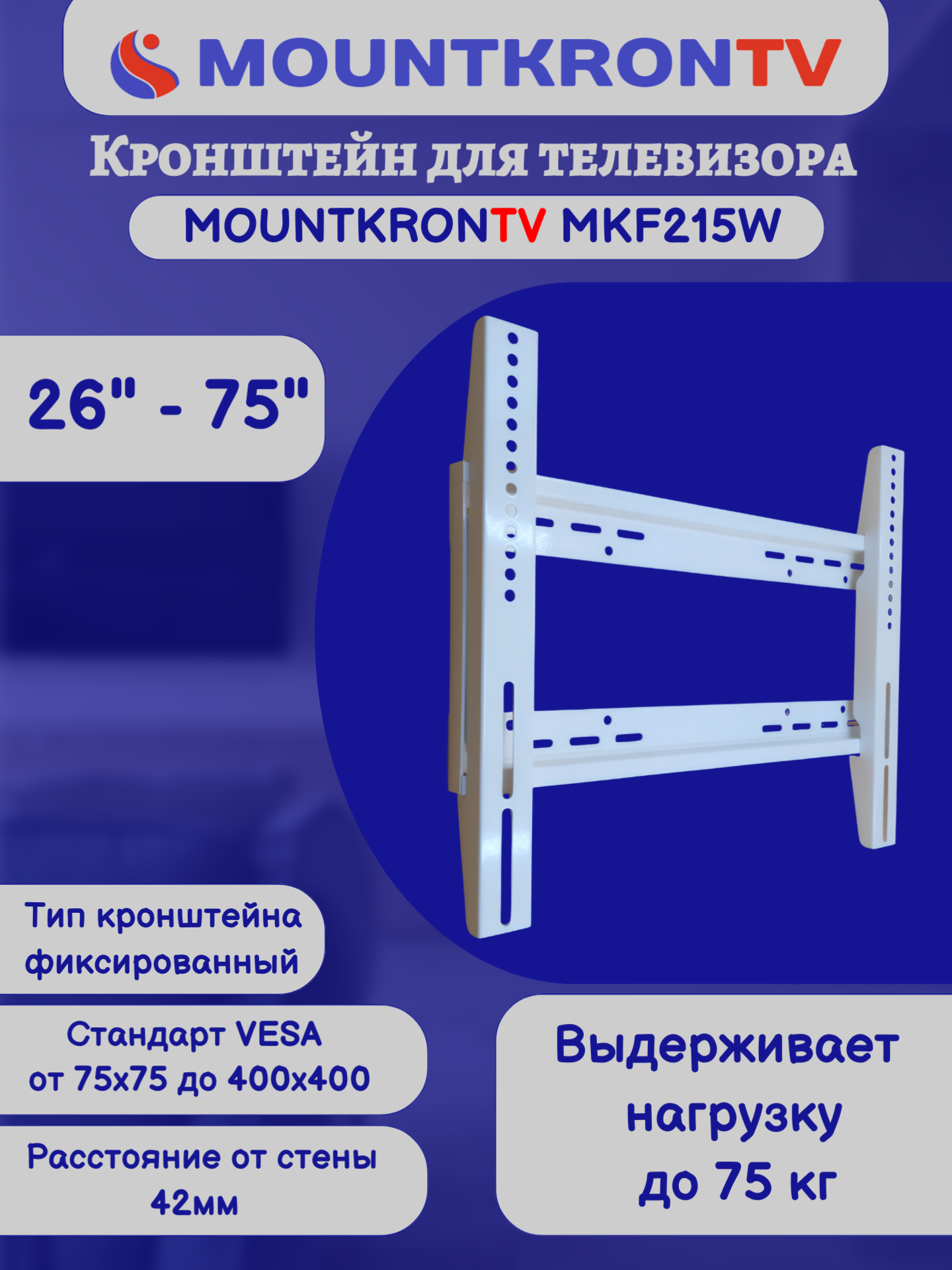 Кронштейн для телевизора MOUNTKRONTV MKF215W на стену, фиксированный, диагональ 26"-75", белый интересное: