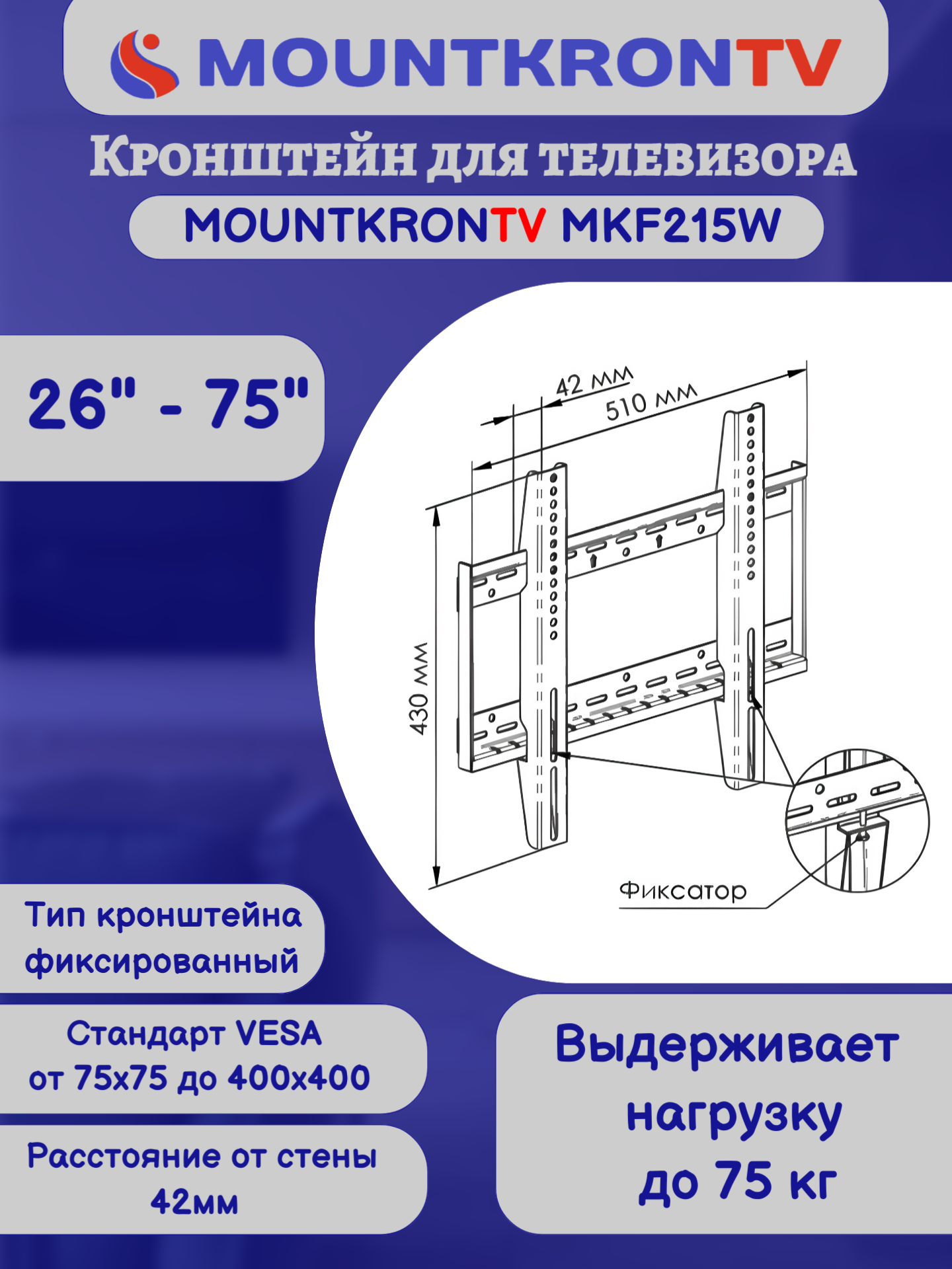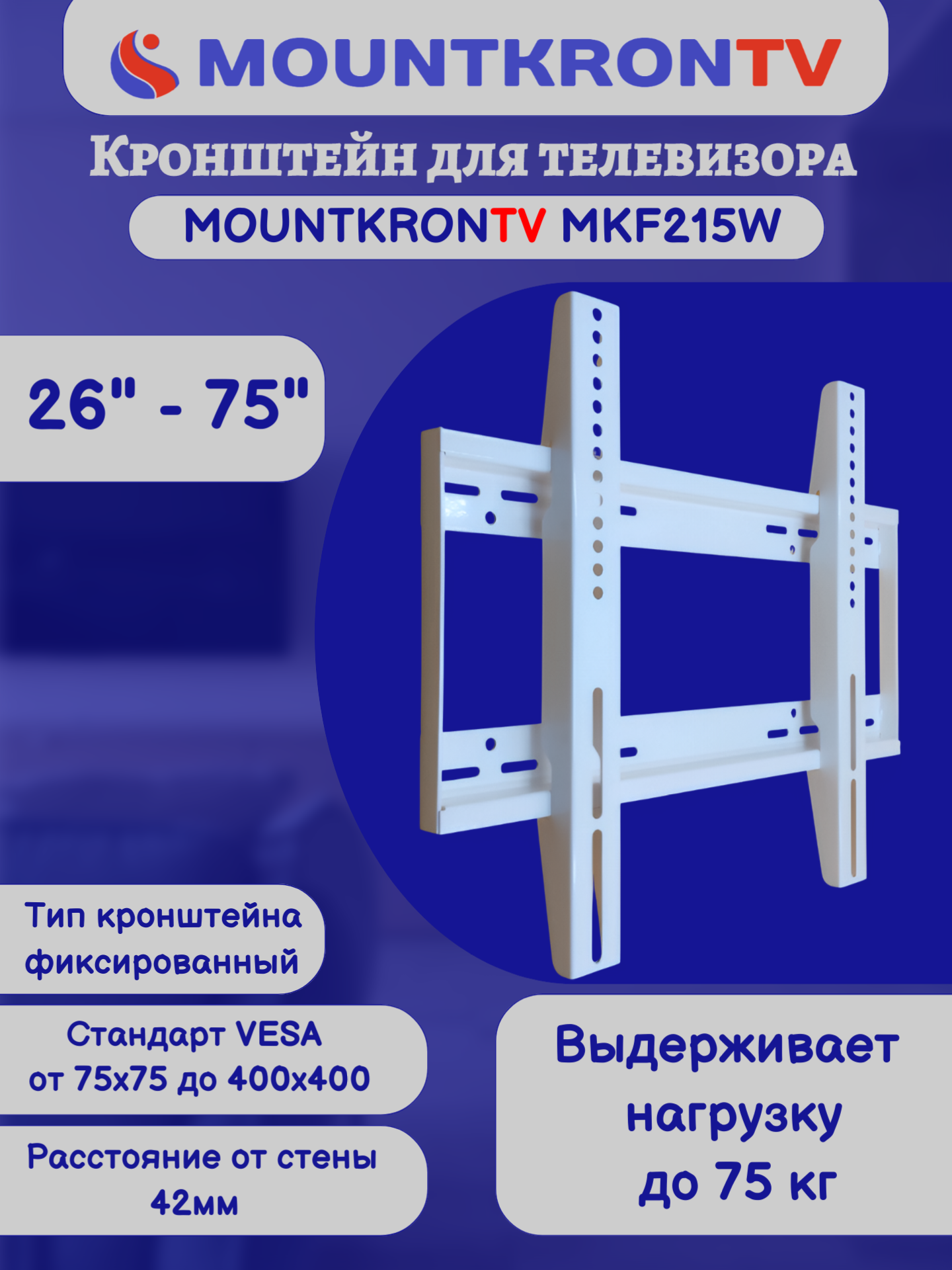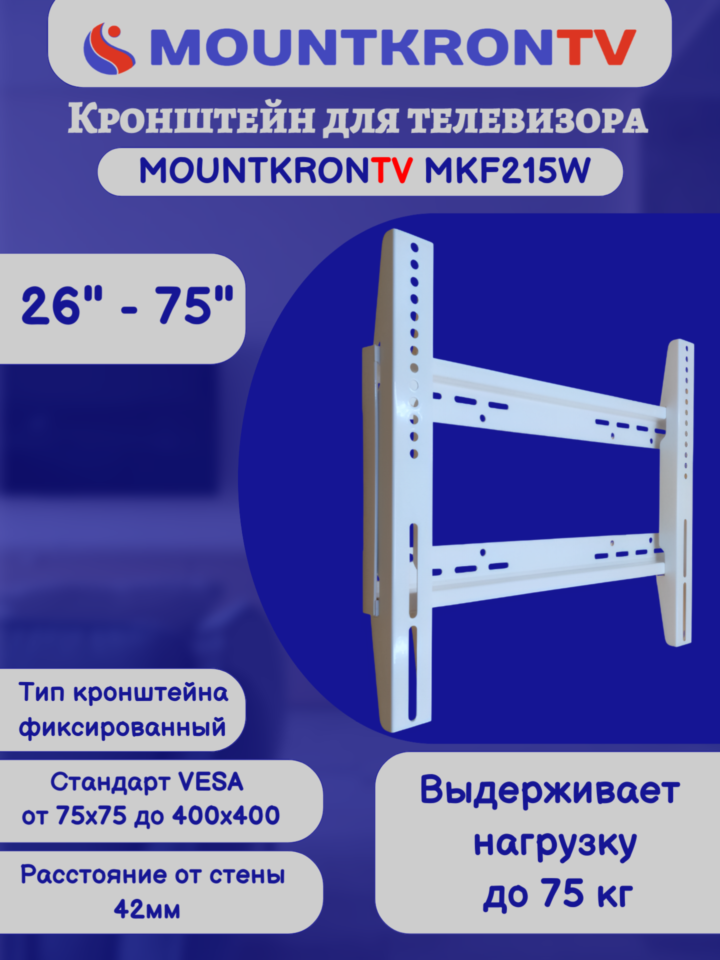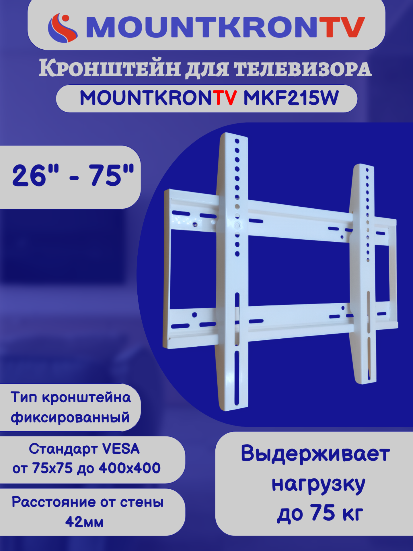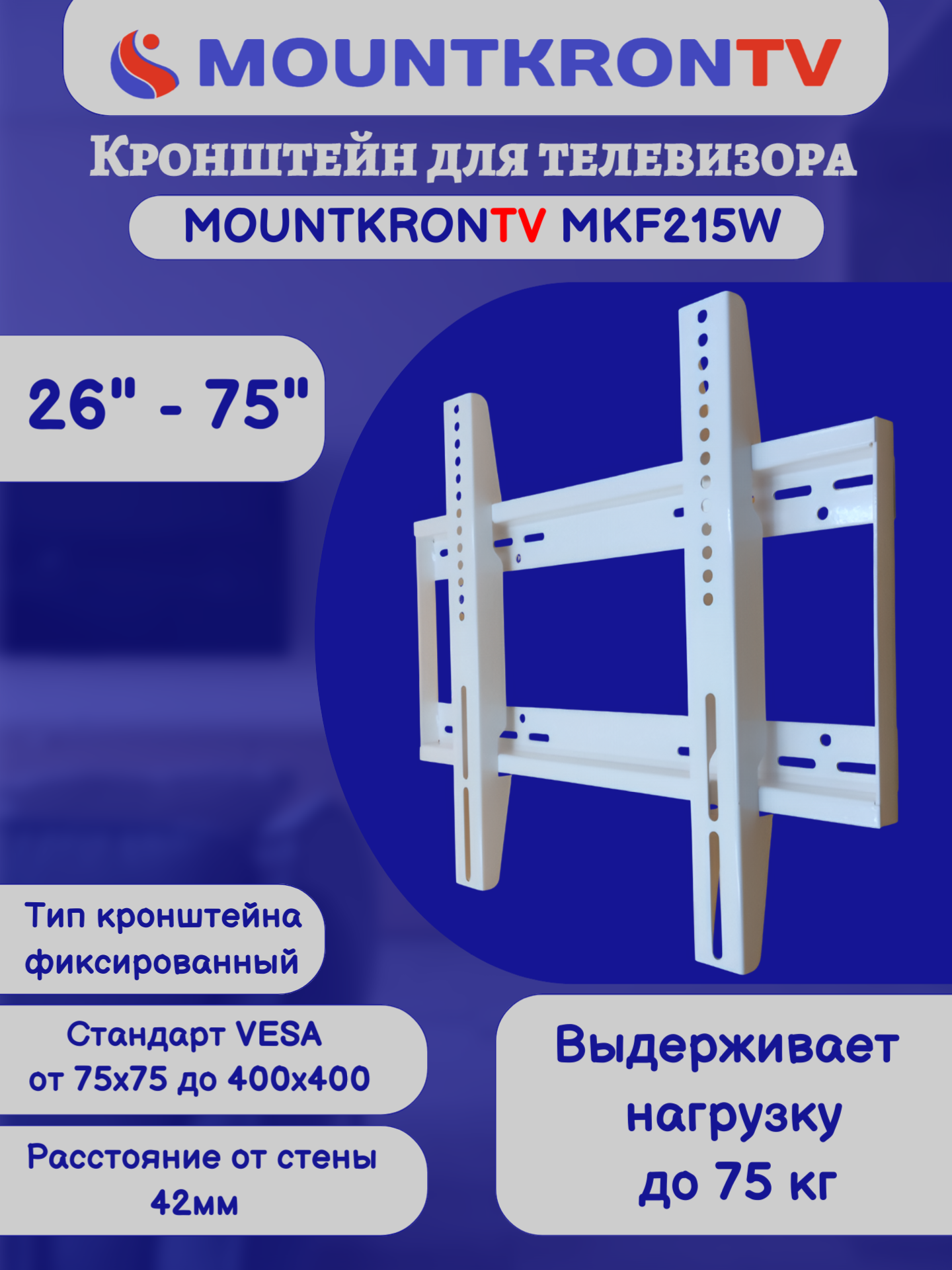 Кронштейн для телевизора MOUNTKRONTV MKF215W на стену, фиксированный, диагональ 26"-75", белый интересное: