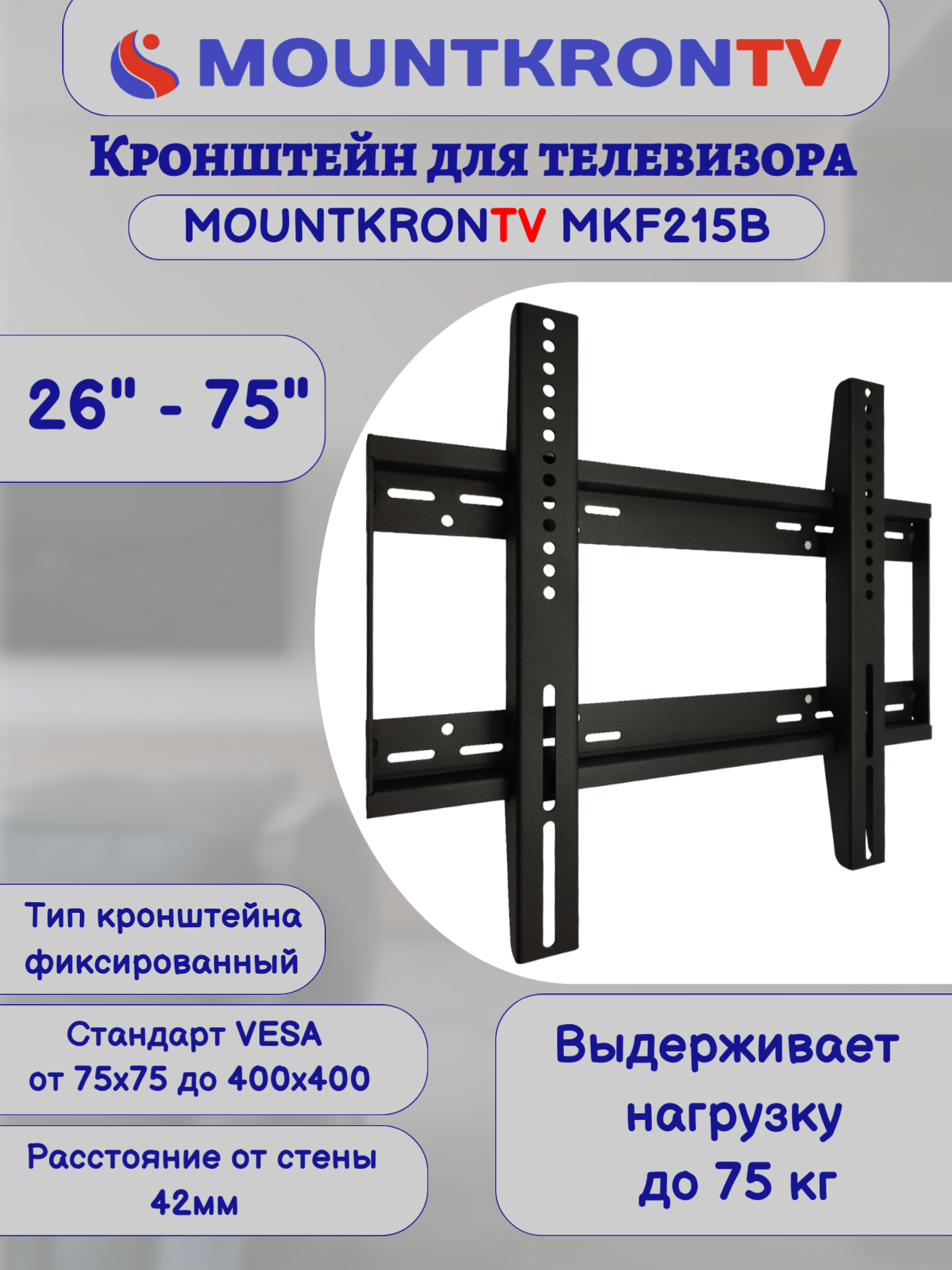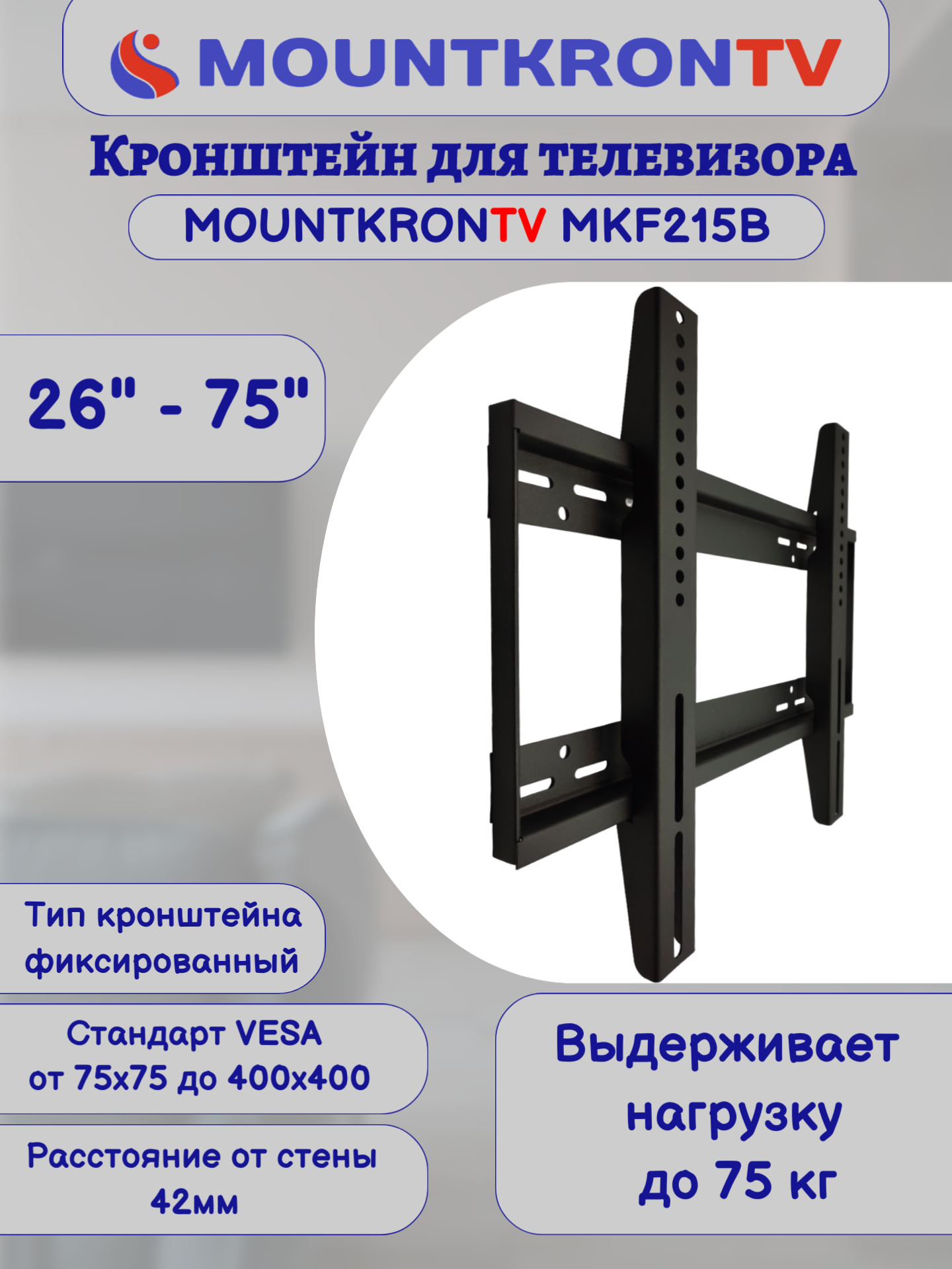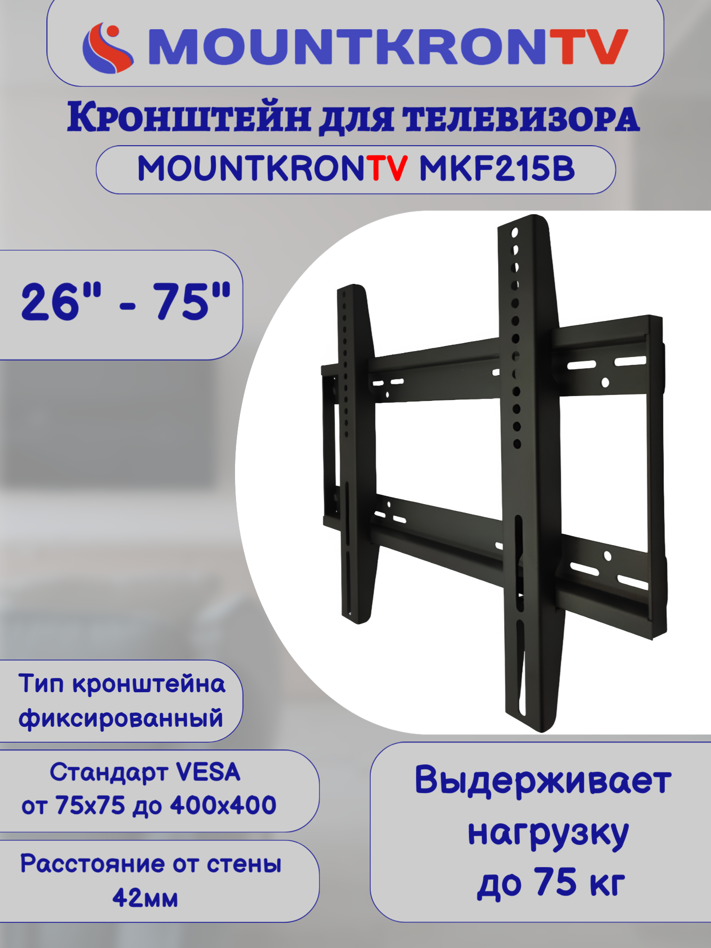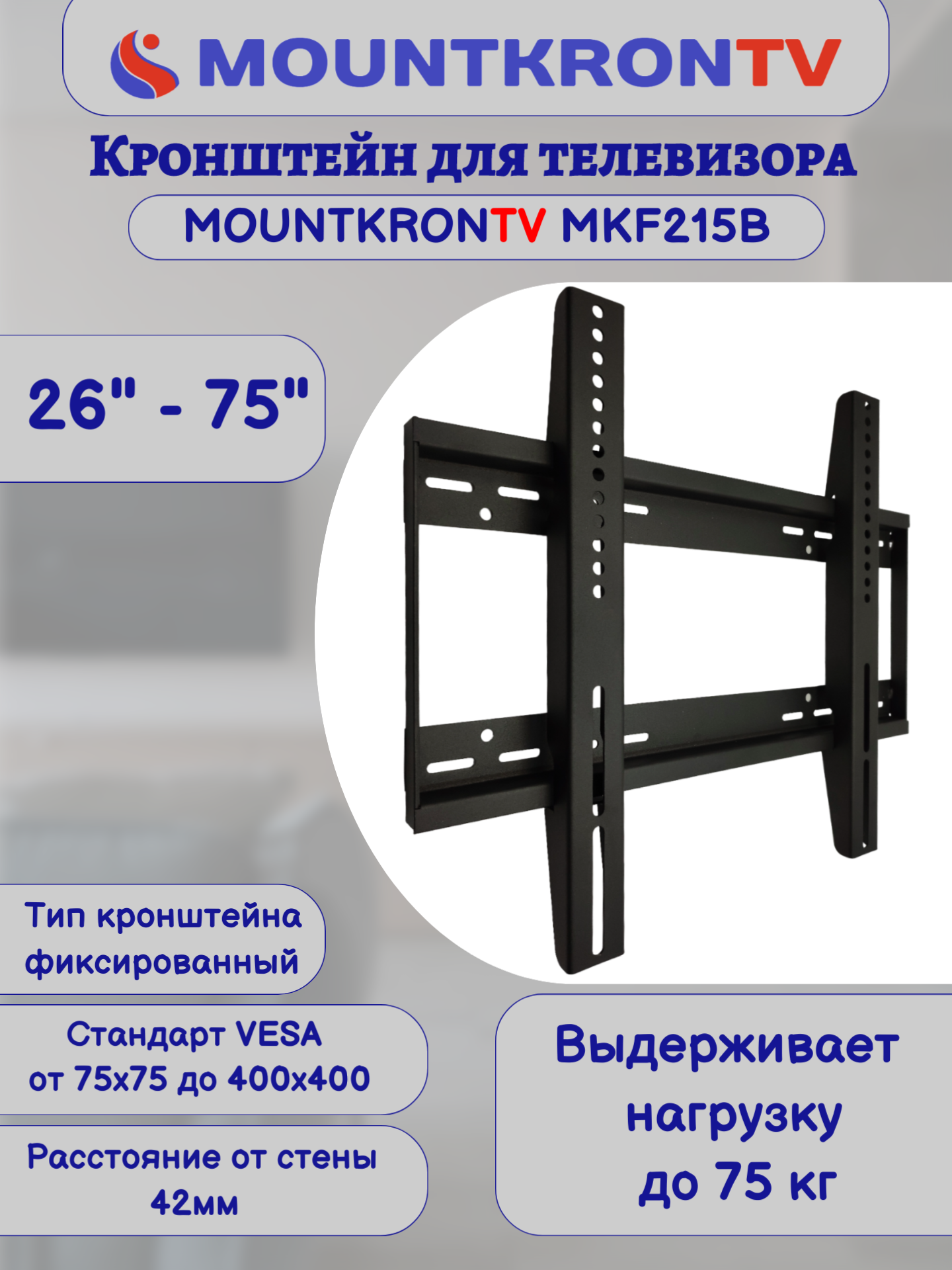 Кронштейн для телевизора MOUNTKRONTV MKF215B черный, на стену, фиксированный, диагональ 26"-75" интересное: