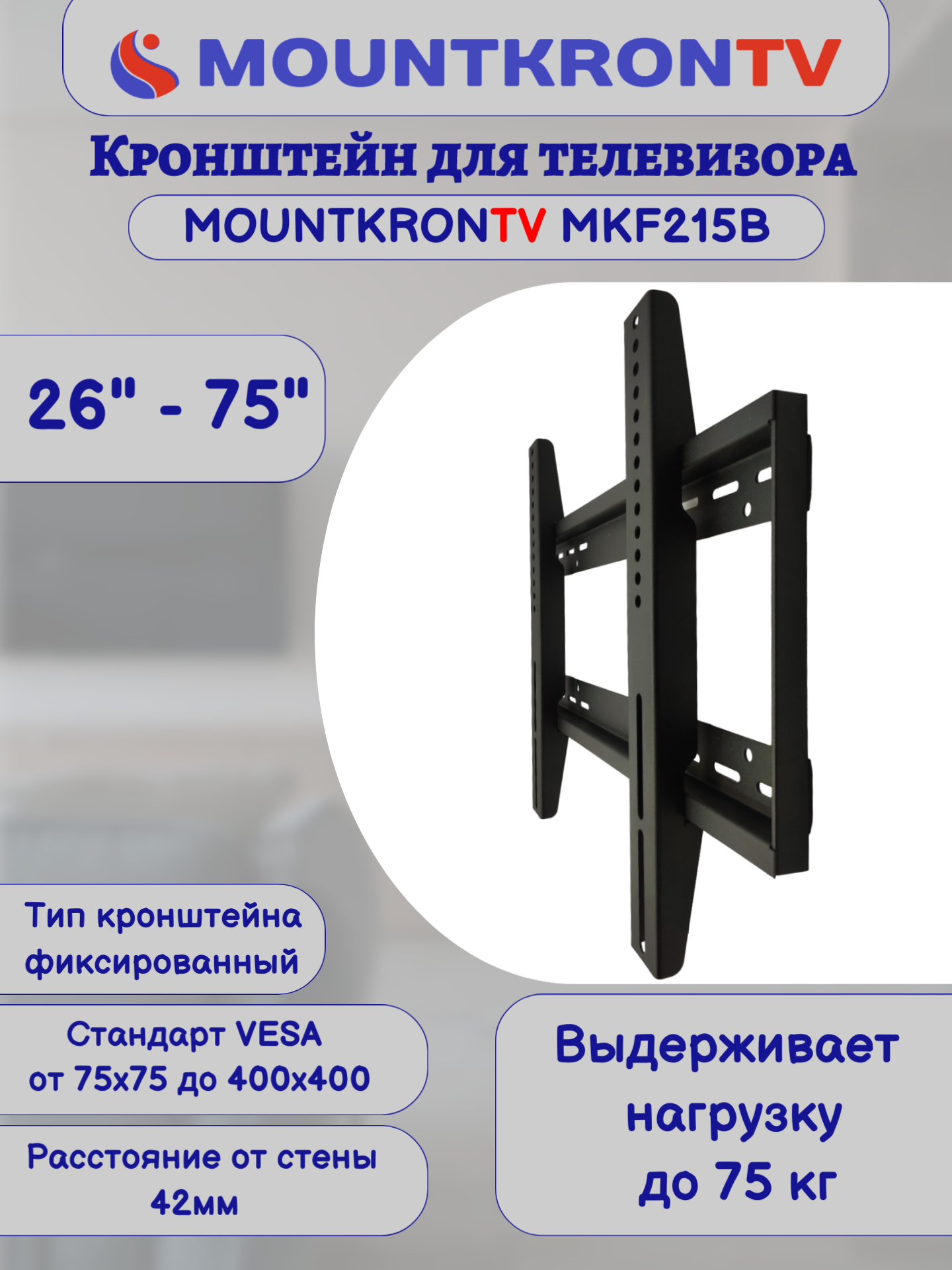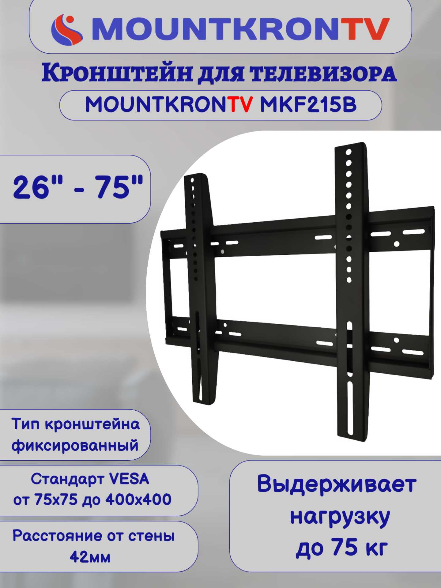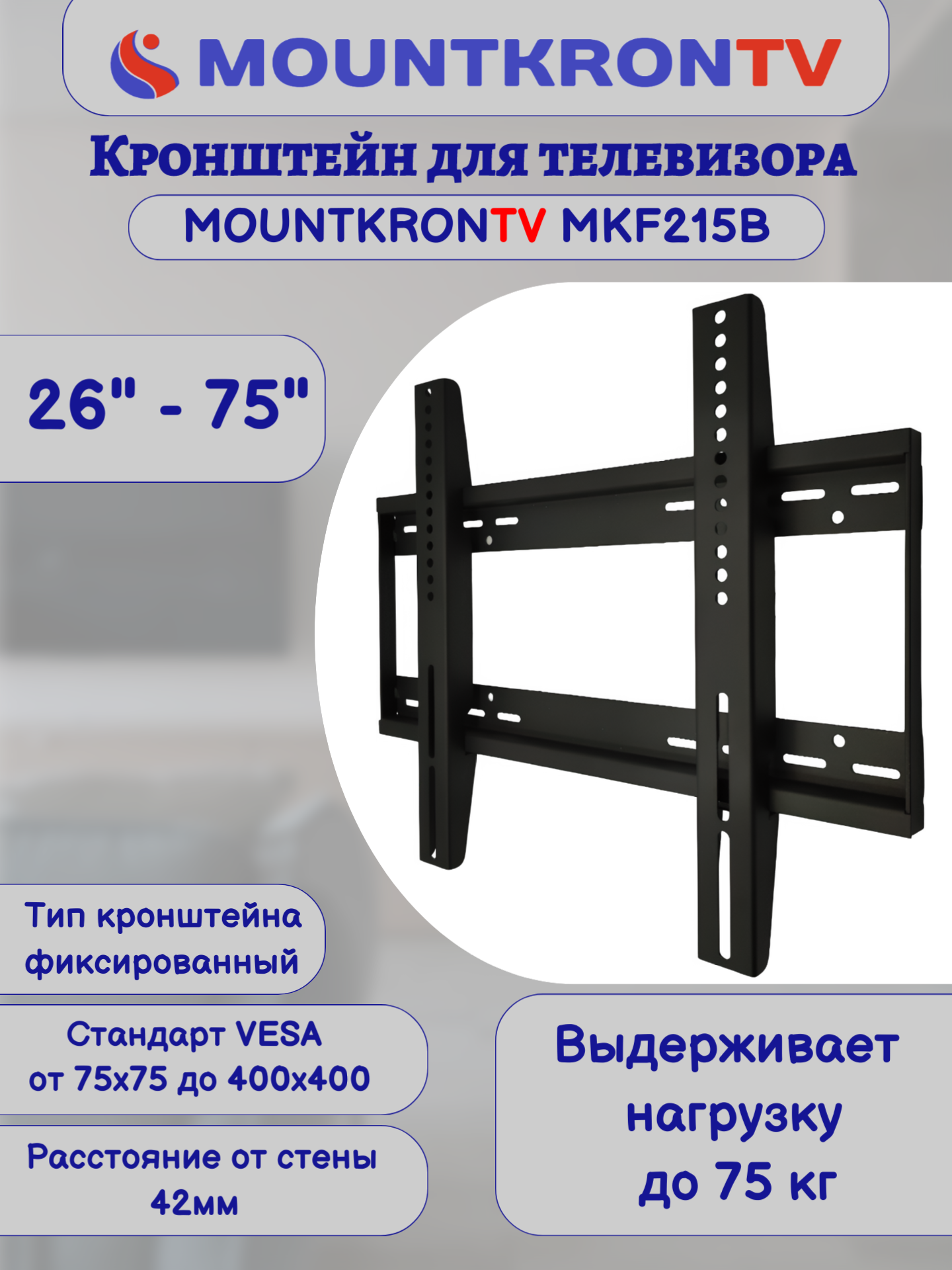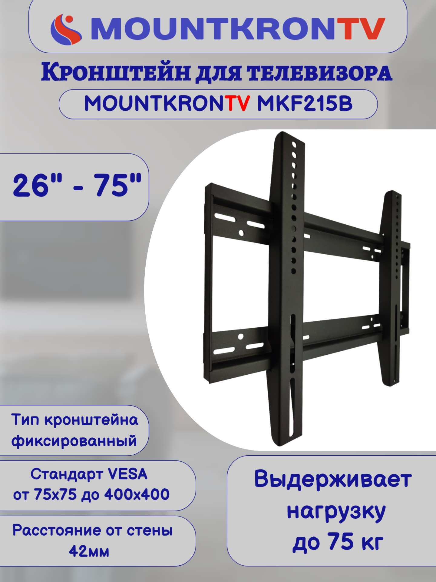 Кронштейн для телевизора MOUNTKRONTV MKF215B черный, на стену, фиксированный, диагональ 26"-75" интересное: