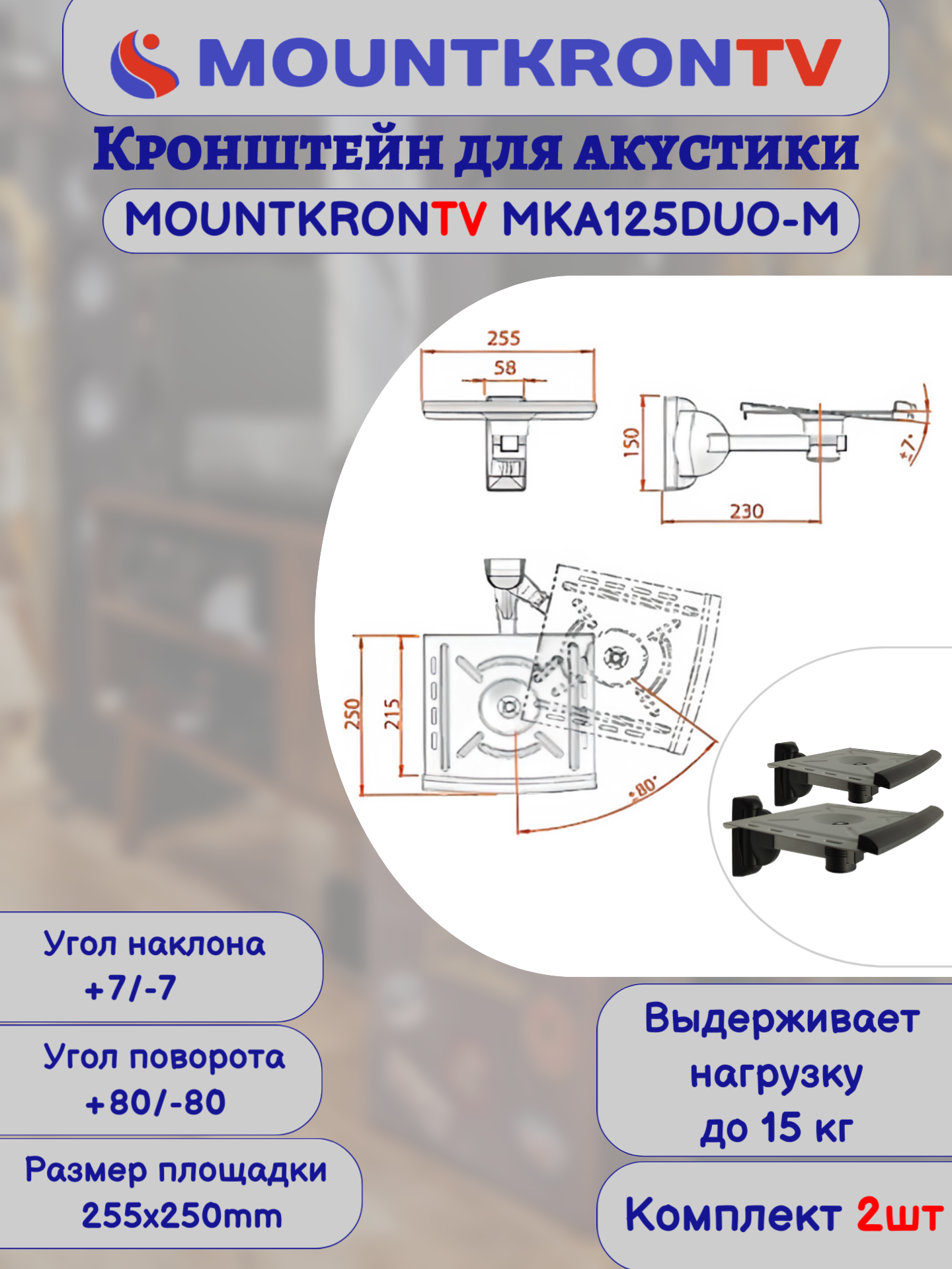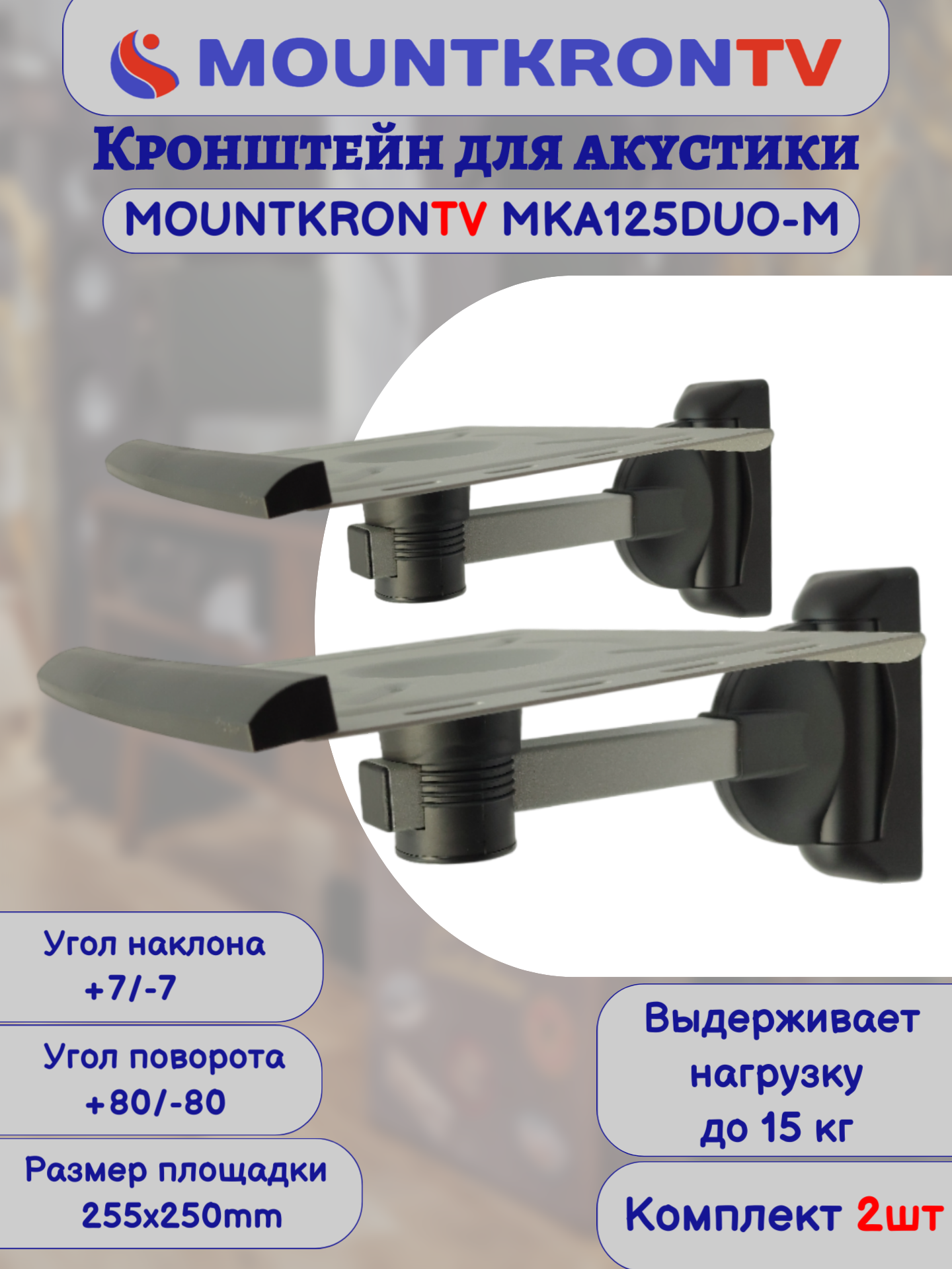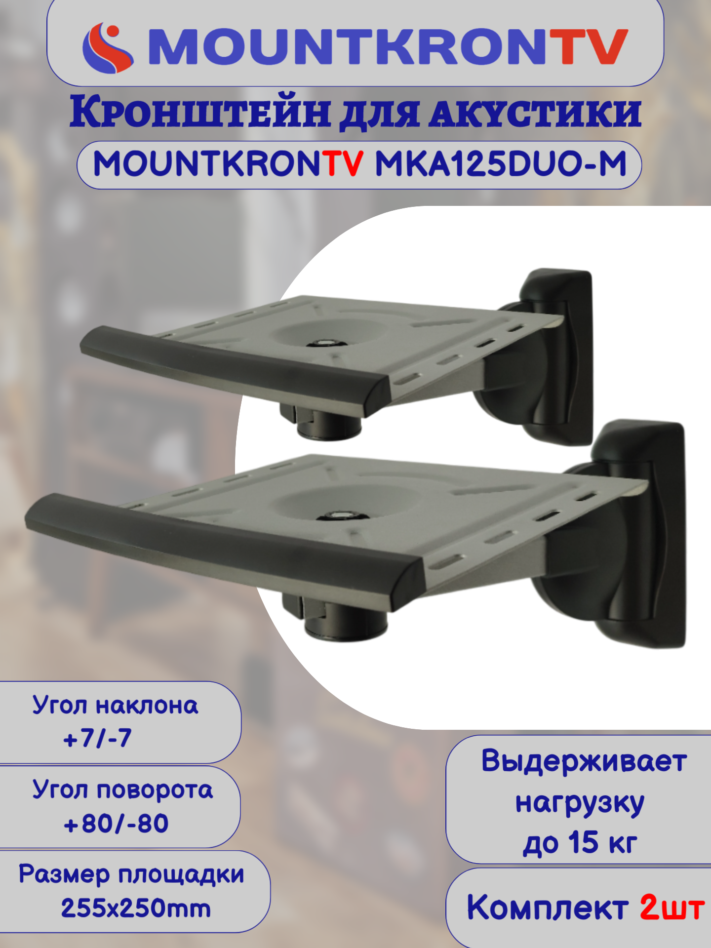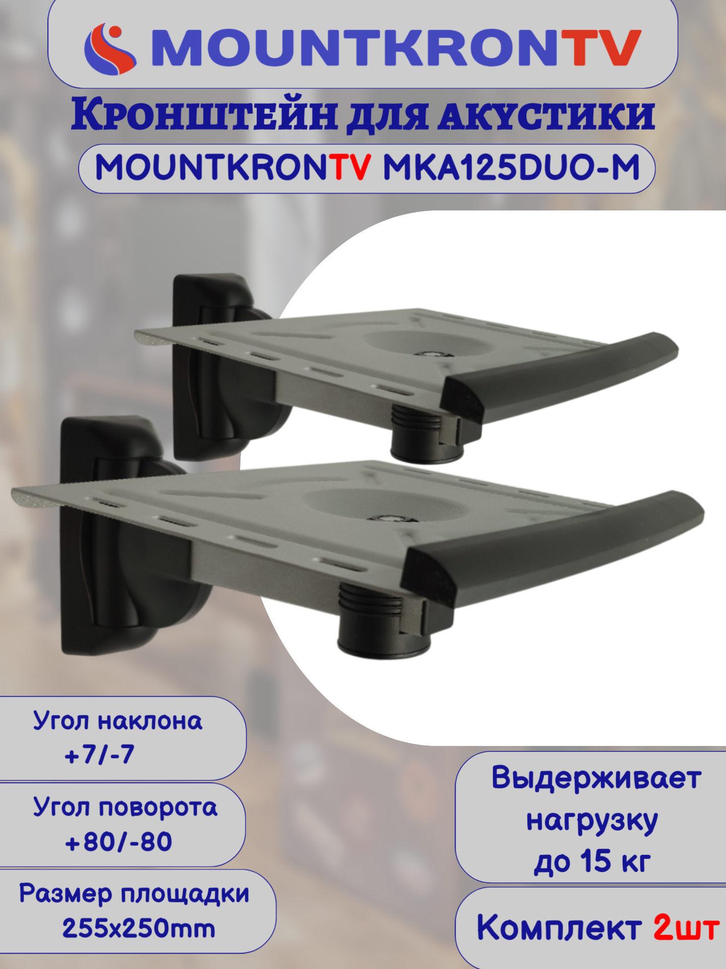 Кронштейн для акустики MOUNTKRONTV MKA125DUO-M серый металлик, комплект 2шт, на стену, наклонно-поворотный интересное: