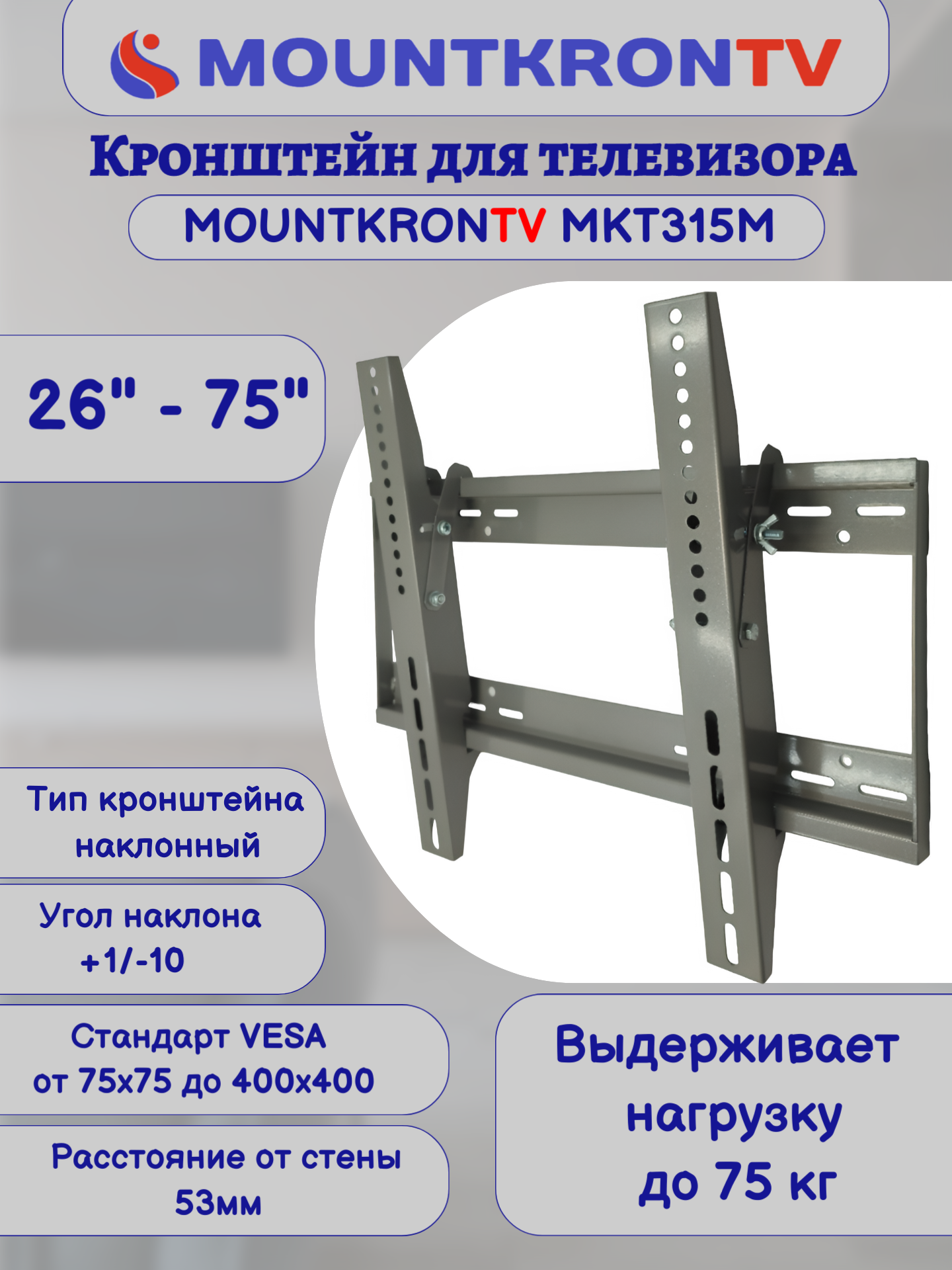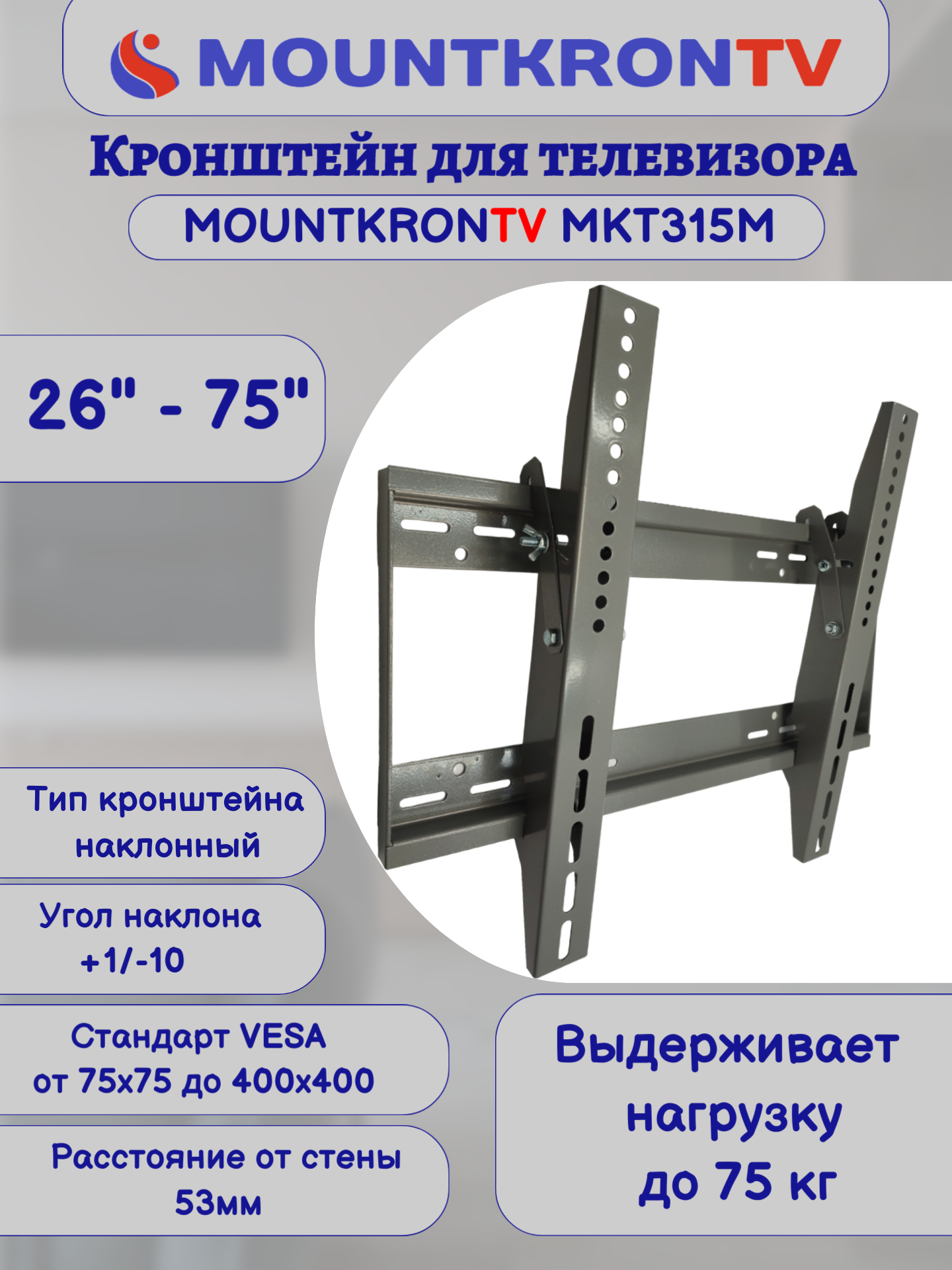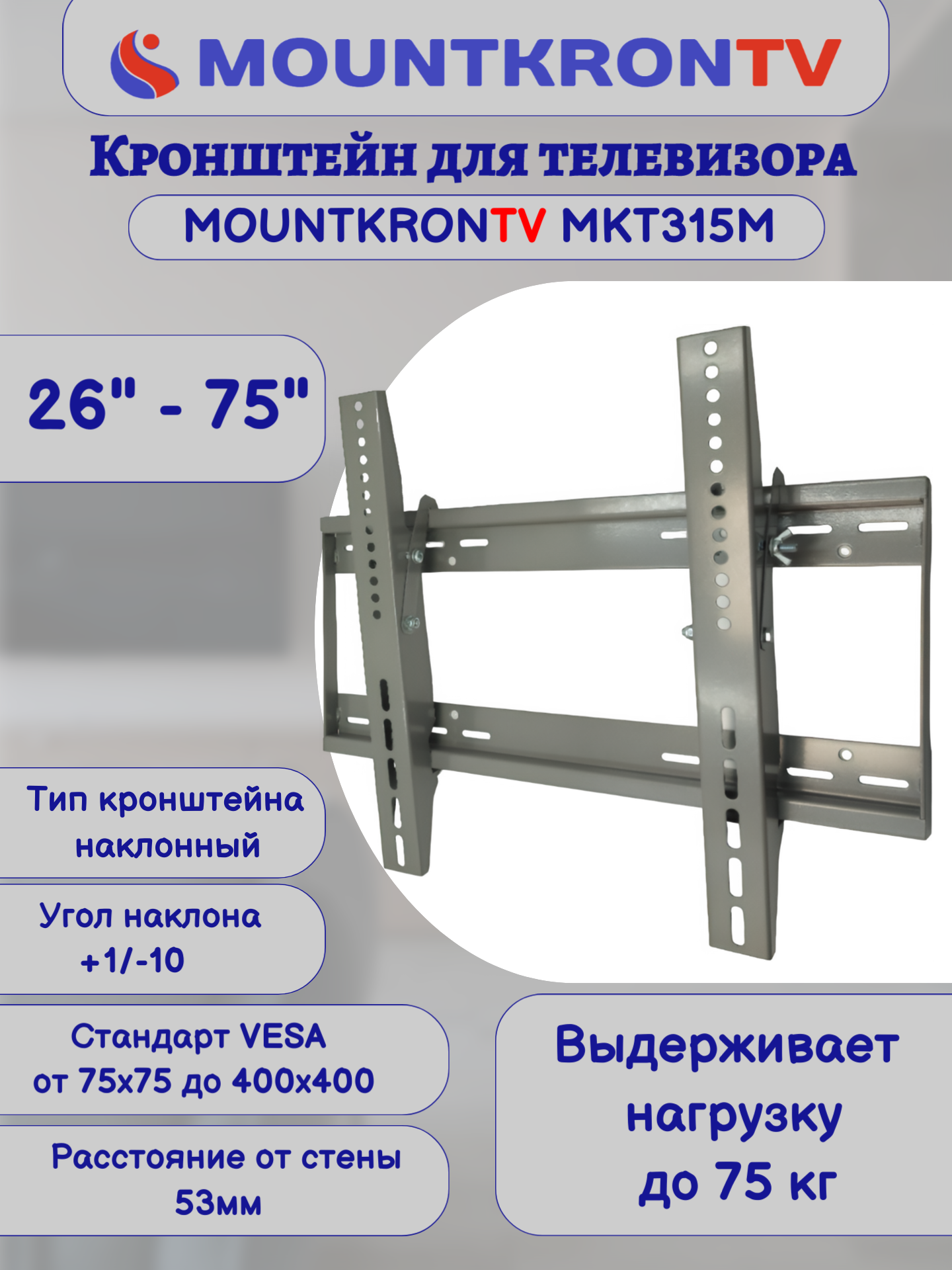 Кронштейн для телевизора MOUNTKRONTV MKT315M серый металлик, на стену, наклонный, диагональ 26"-75" интересное: