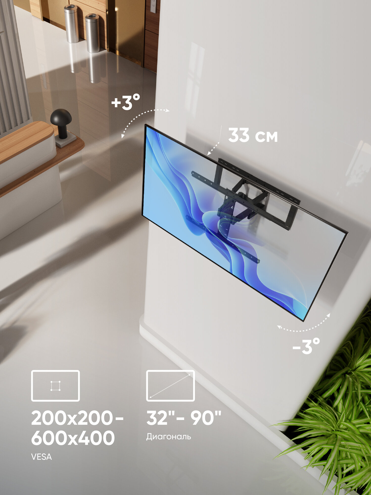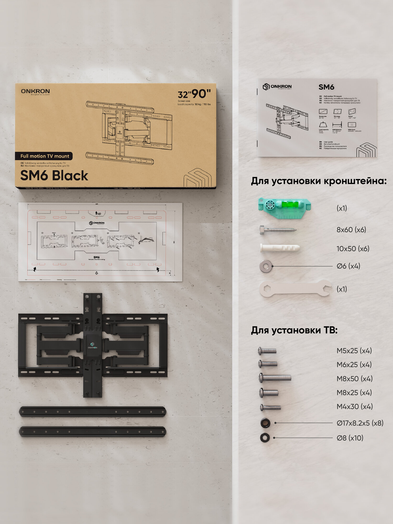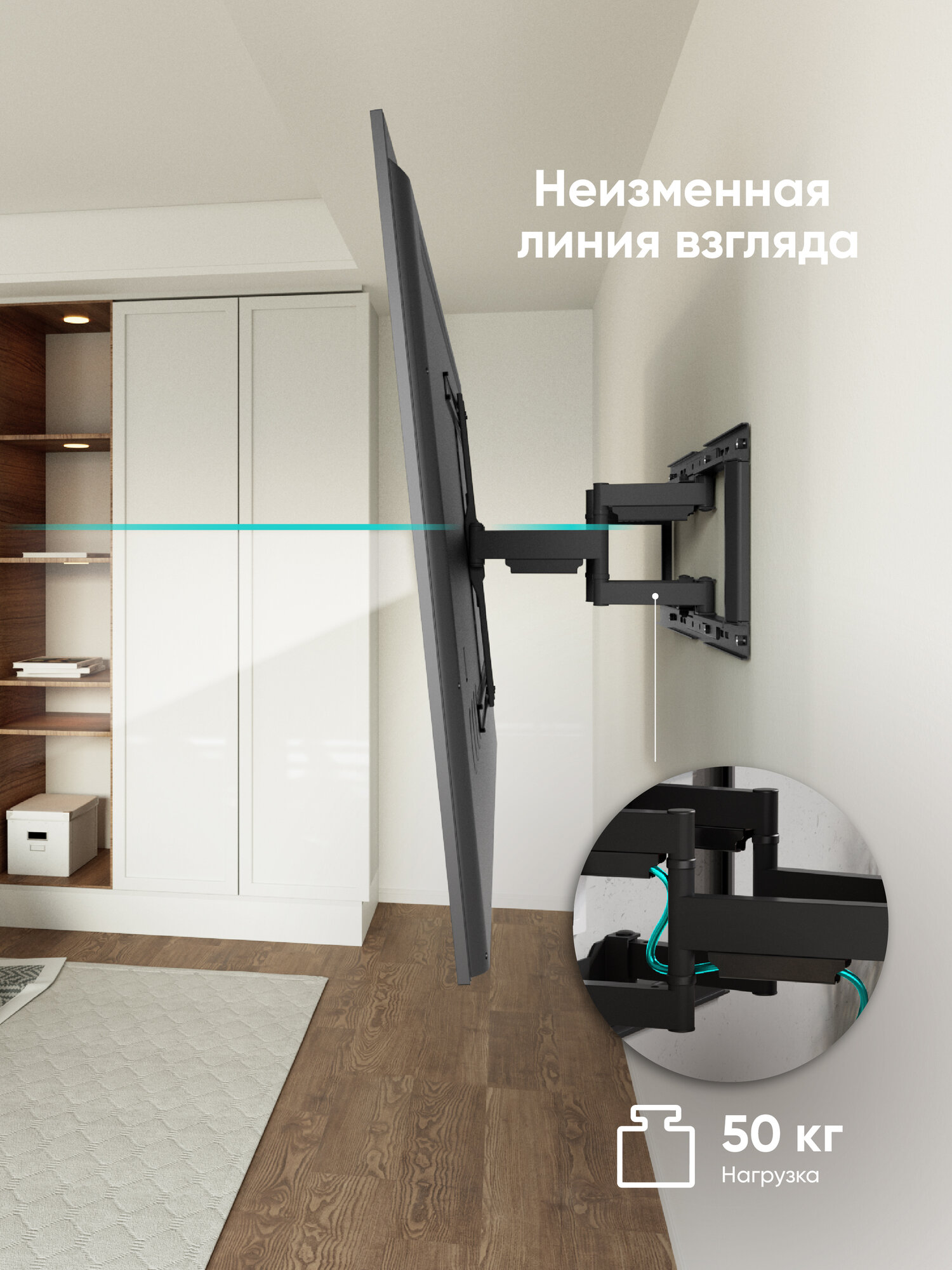 Кронштейн для телевизора 32"-90" ONKRON SM6 настенный, наклонно-поворотный, до 50 кг, чёрный интересное: