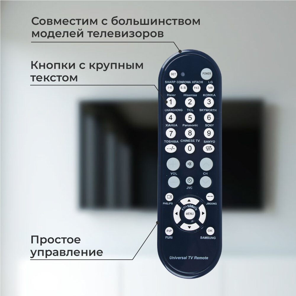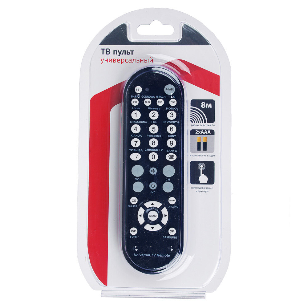 Купить Пульт для телевизора универсальный, округлый, 2хААА, радиус действия 8 м, черный