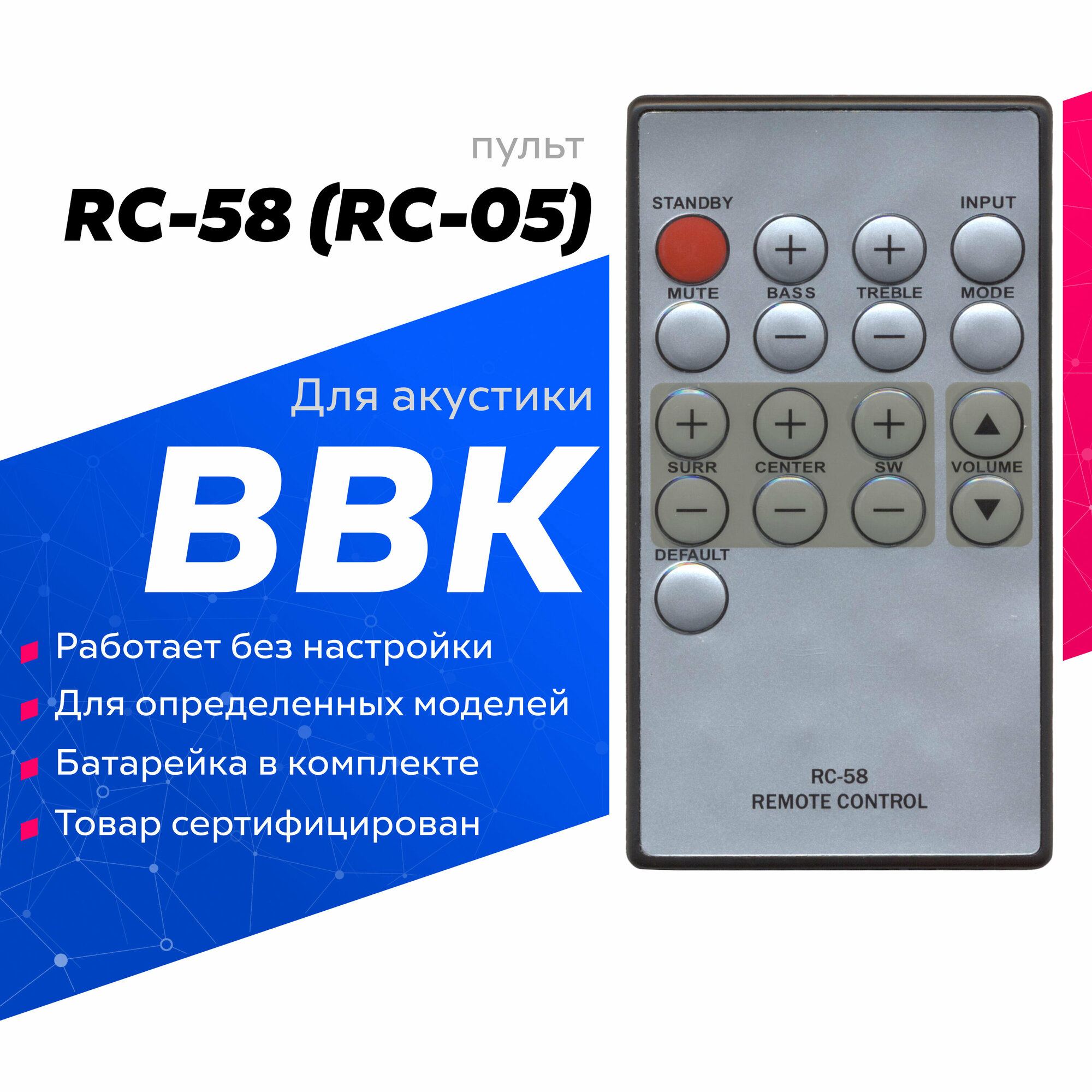 Купить Пульт RC-58(rc-05) для BBK/БИ би кей/ббк акустической системы