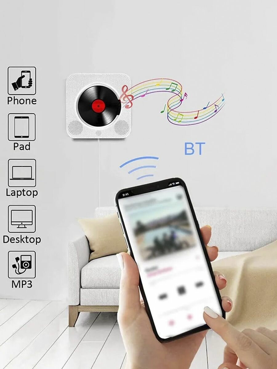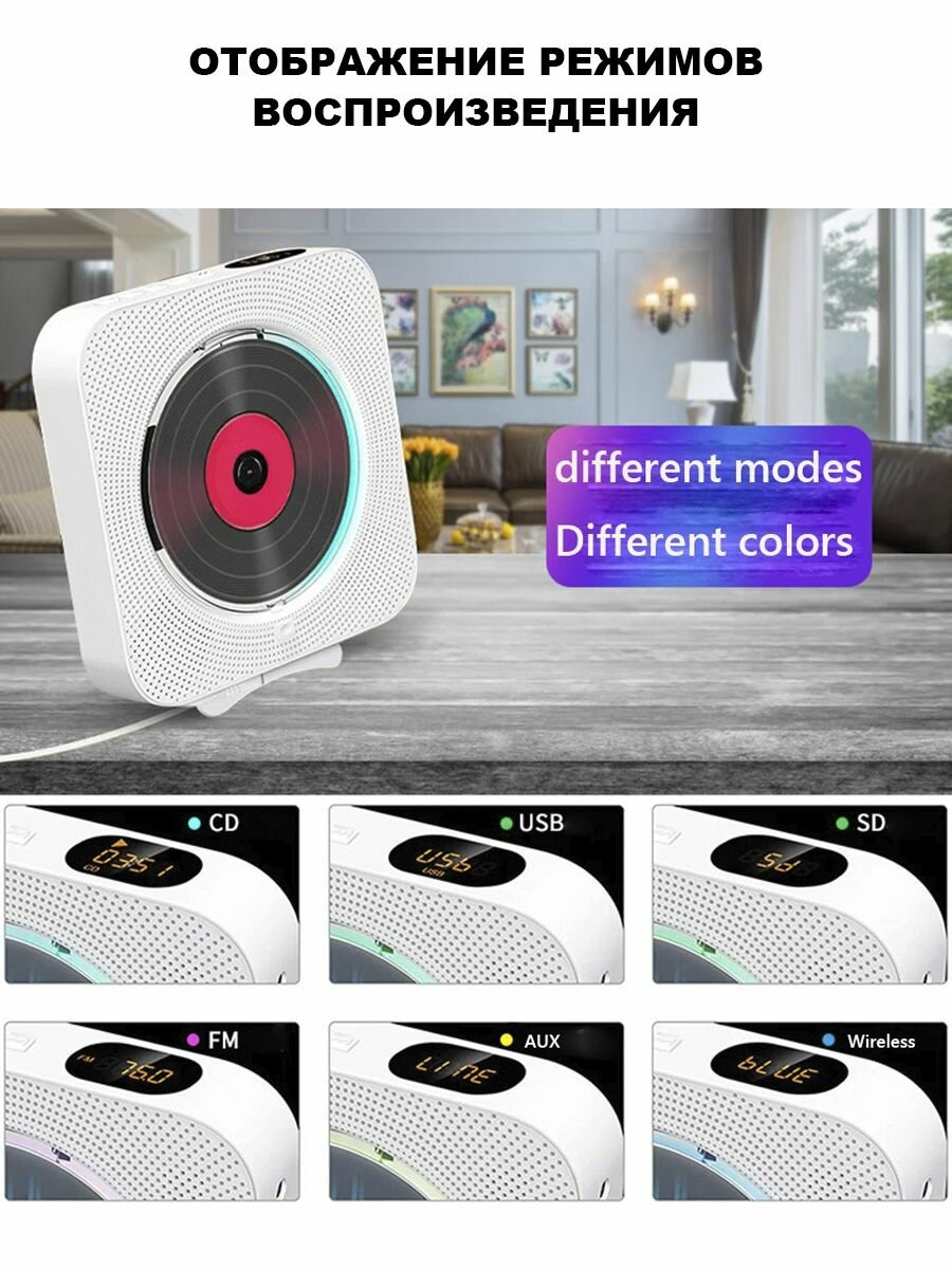 CD проигрыватель блютуз для дисков музыкальный MP3 плеер интересное: