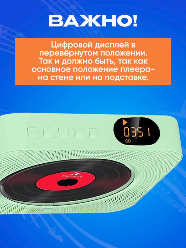 CD проигрыватель для дисков / cd плеер с USB, радио, пульт ДУ, дисплеем (зеленый) интересное: