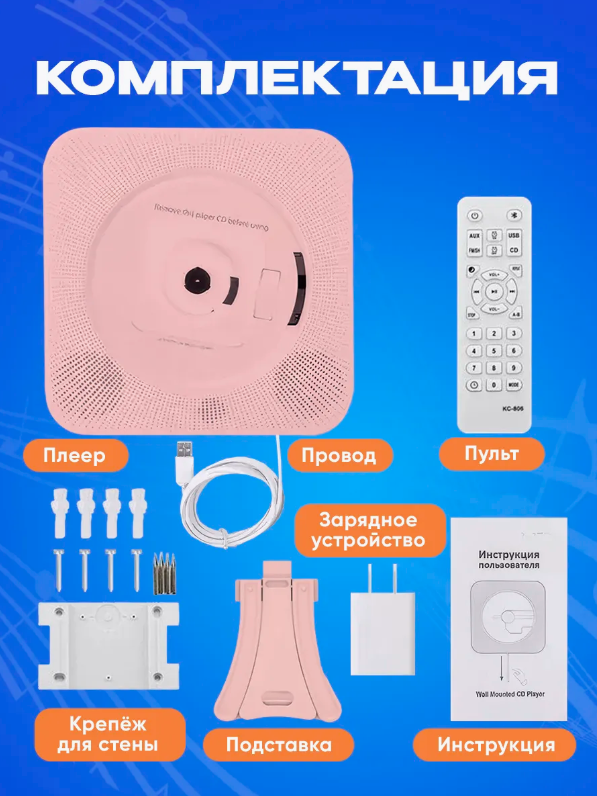 CD проигрыватель для дисков / cd плеер с USB, радио, пульт ДУ, дисплеем (розовый) интересное: