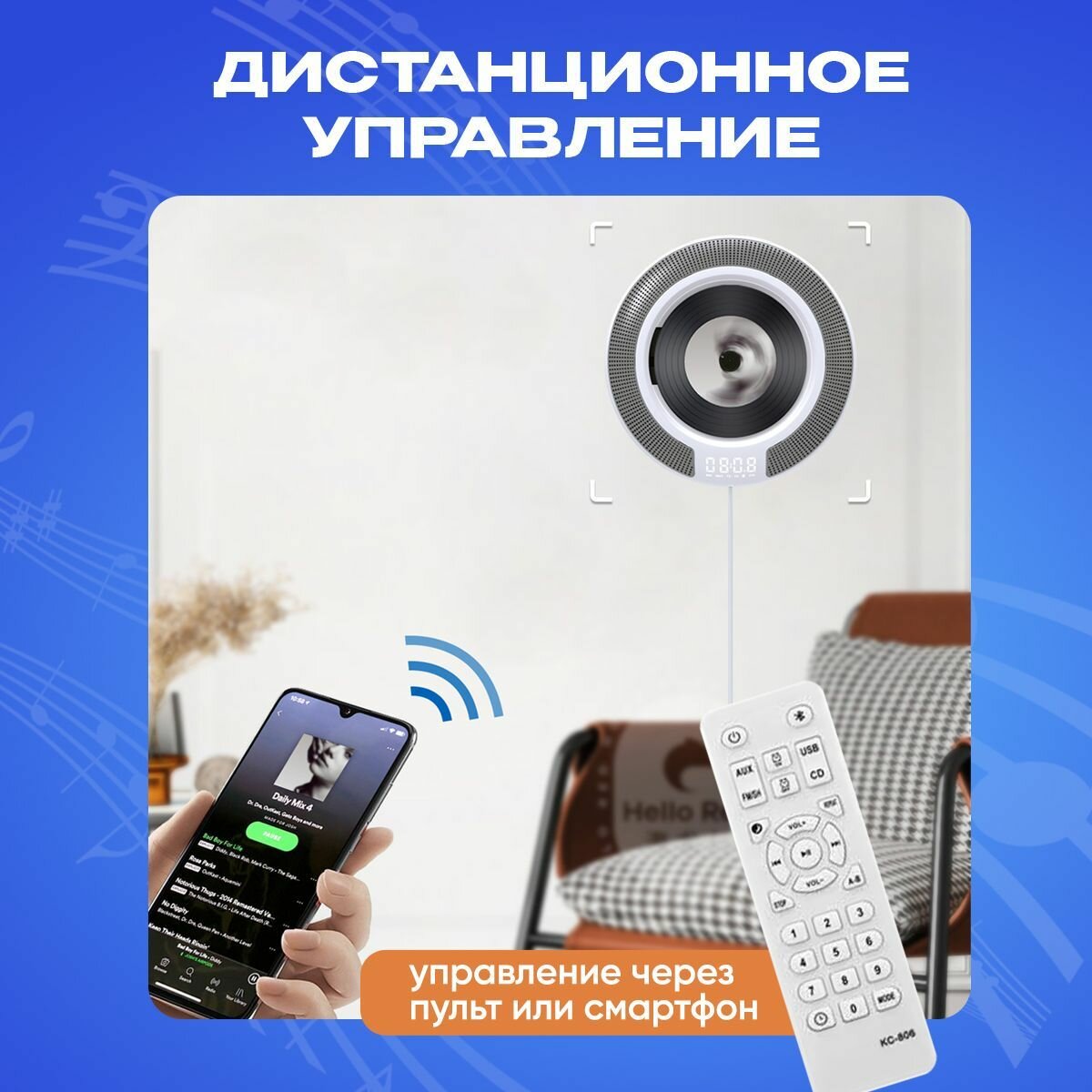 CD проигрыватель, Bluetooth, с пультом управления интересное:
