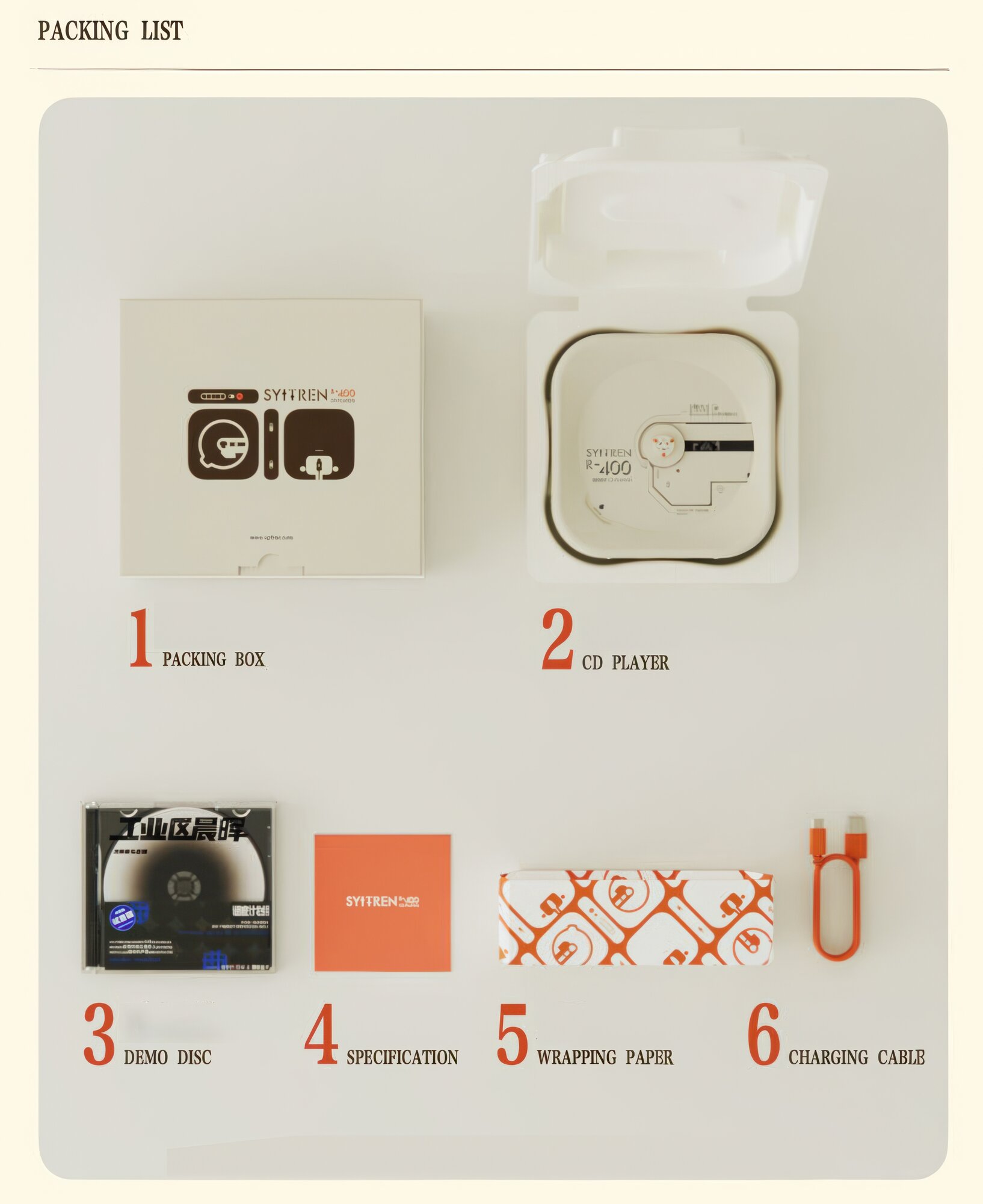 Беспроводной Bluetooth 5.3 CD-проигрыватель Syitren R400, 2000 mAh, прозрачный, оранжевый интересное: