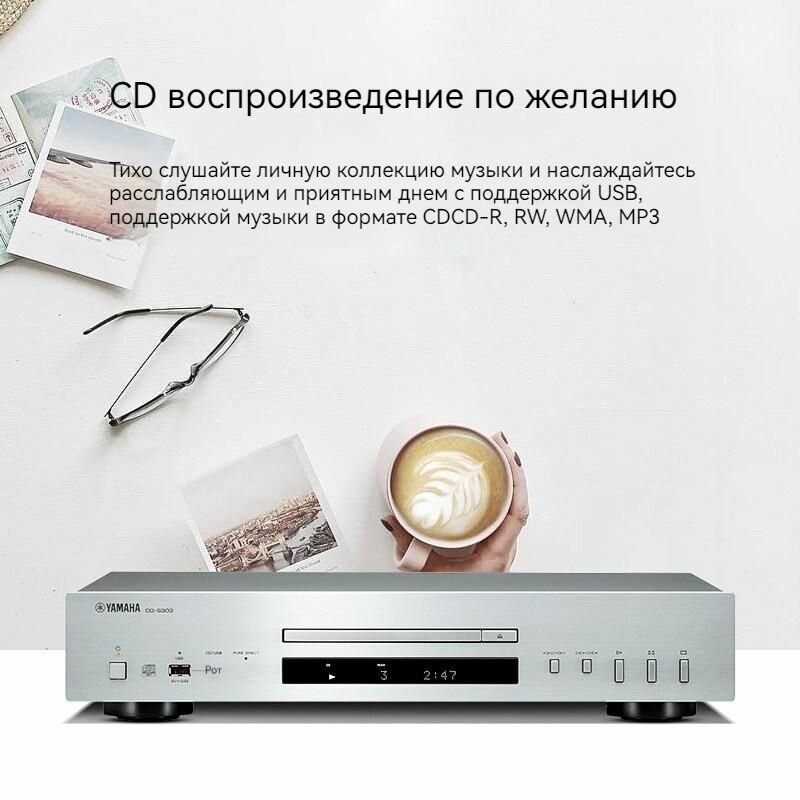 Проигрыватель компакт-дисков Yamaha CD-S303 с качеством звука HiFi USB светло-серый интересное: