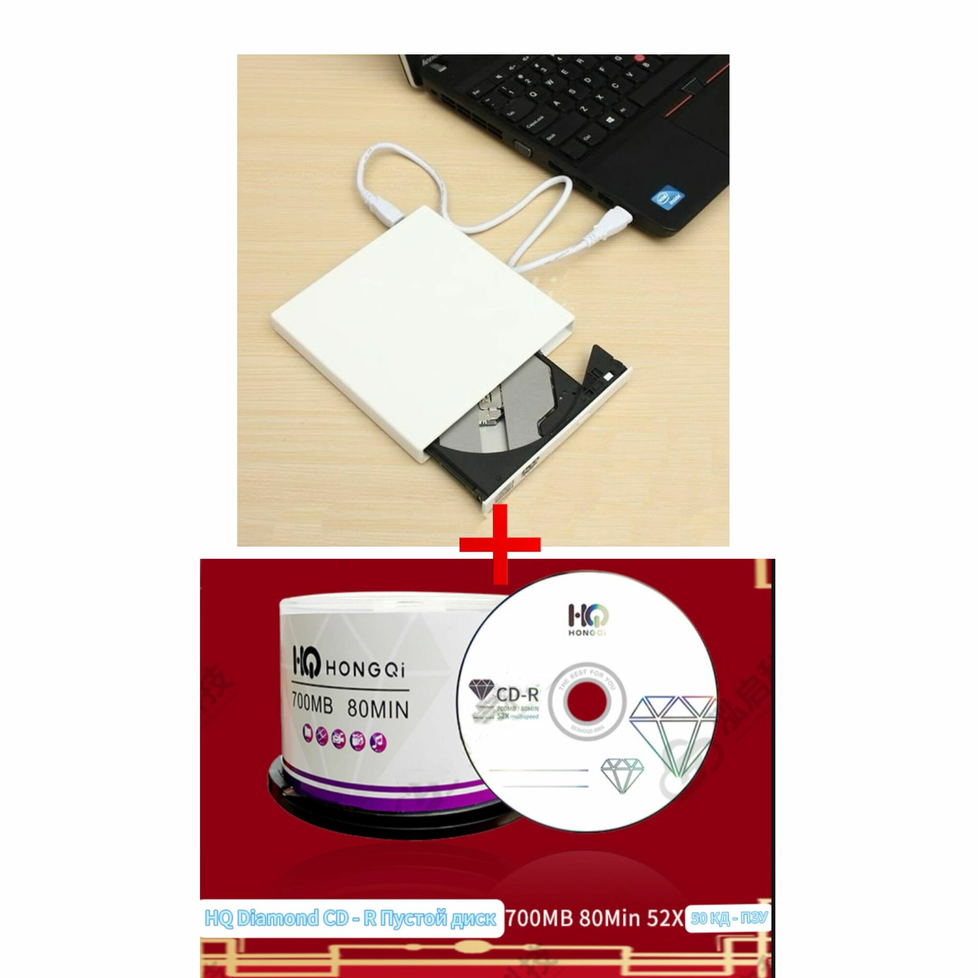 Внешний CD-RW записывающий и читающий DVD/CD-плеер USB 2.0 + набор из 50 пустых CD-R дисков с алмазным покрытием интересное: