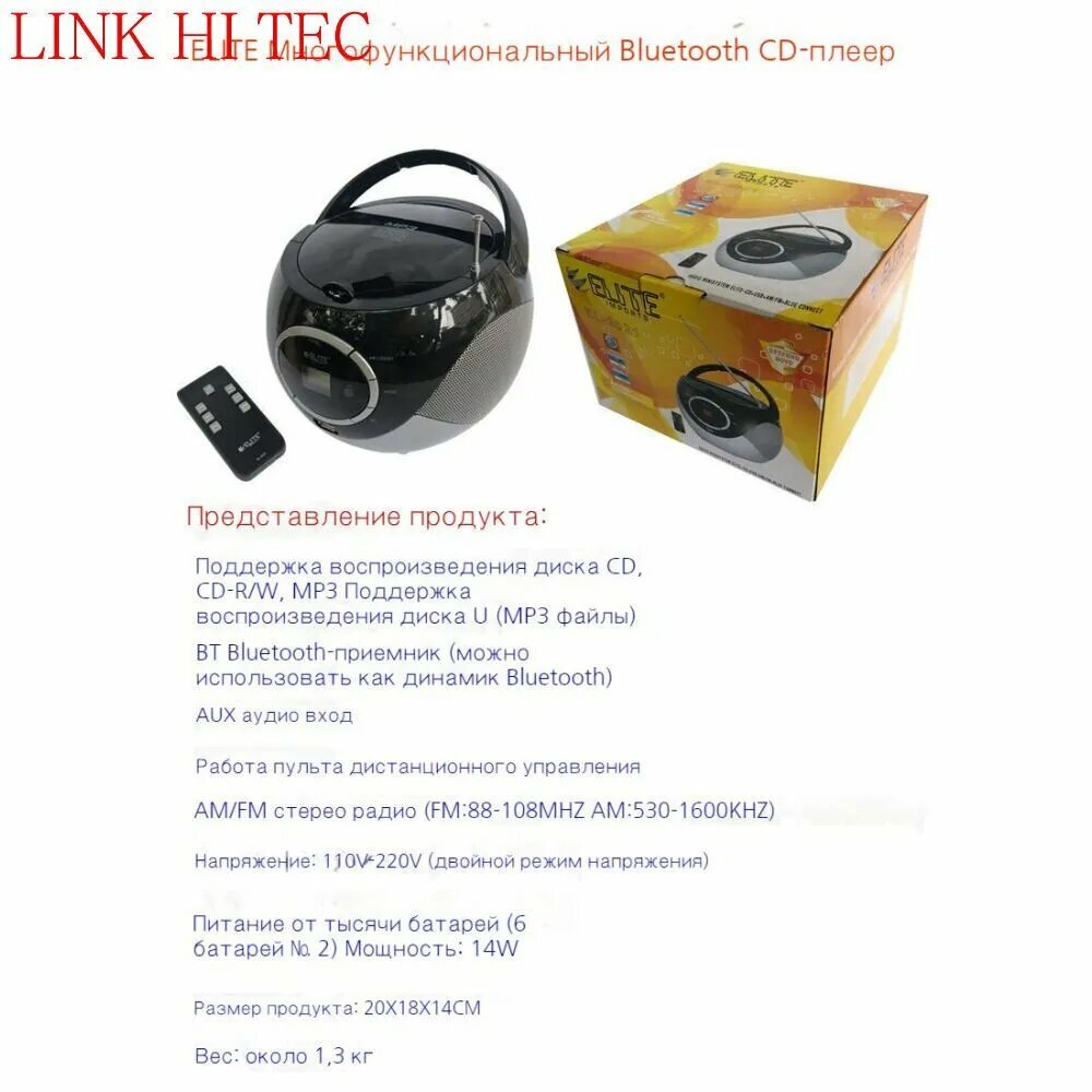 LINKHITEC CD/MP3/USB/плеер, проигрыватель компакт-дисков, черный интересное: