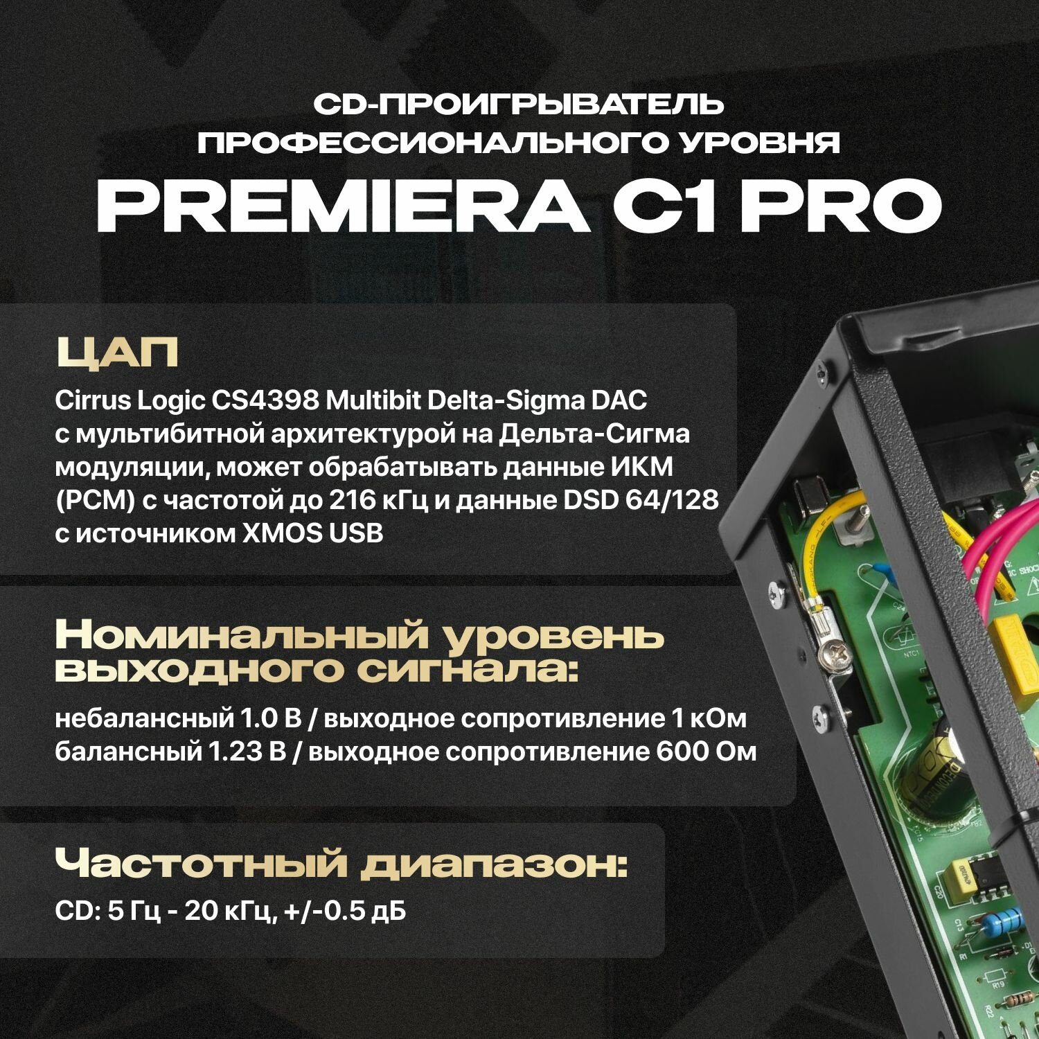 CD-проигрыватель Premiera C1 Pro ЦАП: Cirrus Logic, встроенный БП, 30Вт интересное: