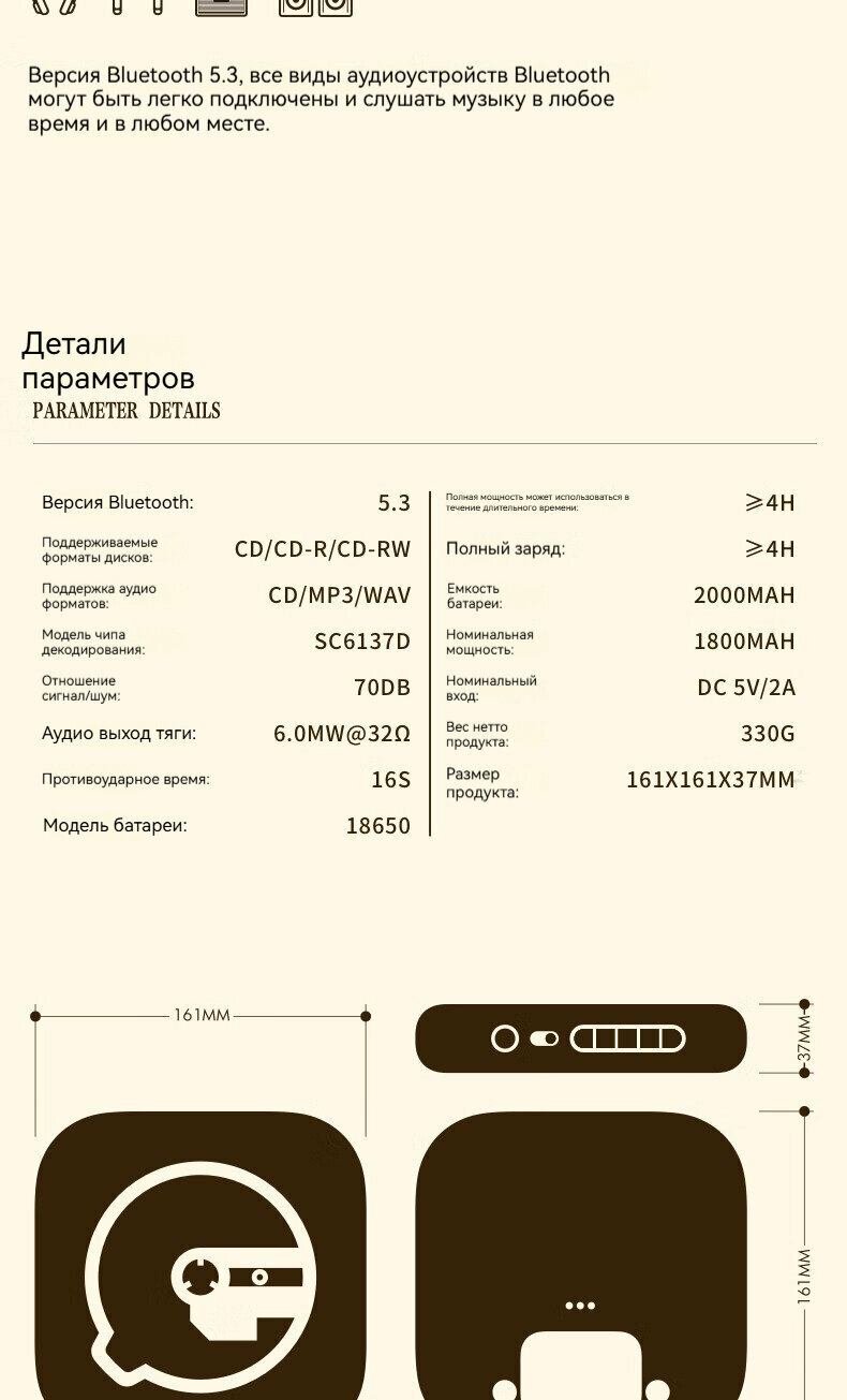 Проигрыватель компакт-дисков Syitren R400, поддерживает подключение по Bluetooth, оснащен защитным кожухом-кронштейном интересное: