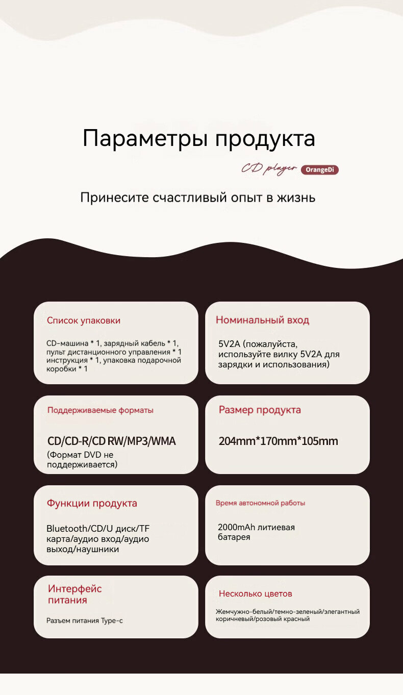Проигрыватель компакт-дисков Orange Di D200, студийное качество звука + диафрагма с двумя динамиками интересное: