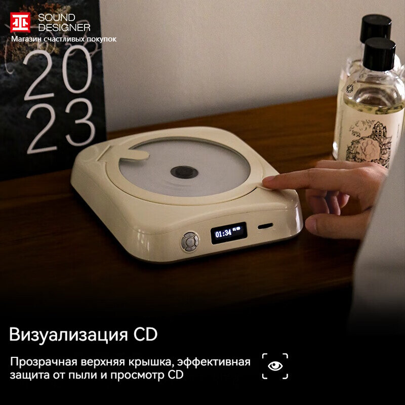 CD-плеер SOUND DESIGNER, портативный, 1800 мАч, подключение по Bluetooth, белый