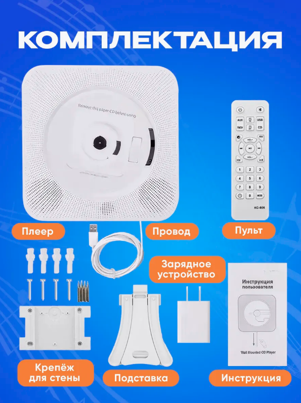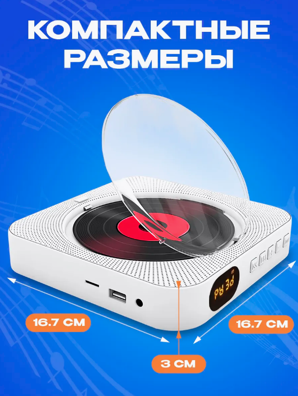 CD проигрыватель для дисков / cd плеер с USB, радио, пульт ДУ, дисплеем (белый) интересное: