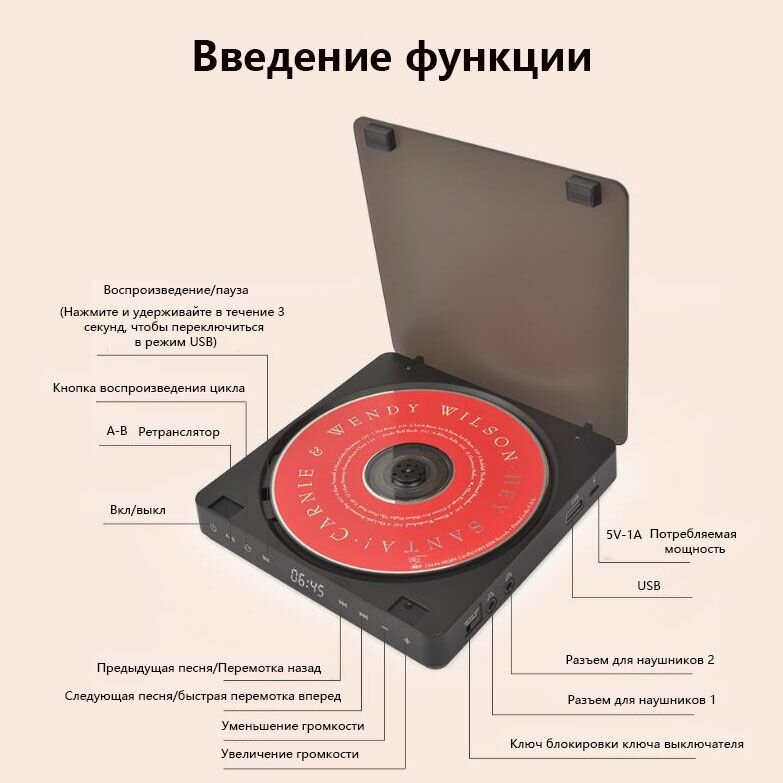 ПортативныйCD Проигрыватель Портативный Перезаряжаемый Двойной Выход Для Наушников 3,5 Мм Считывание С USB интересное: