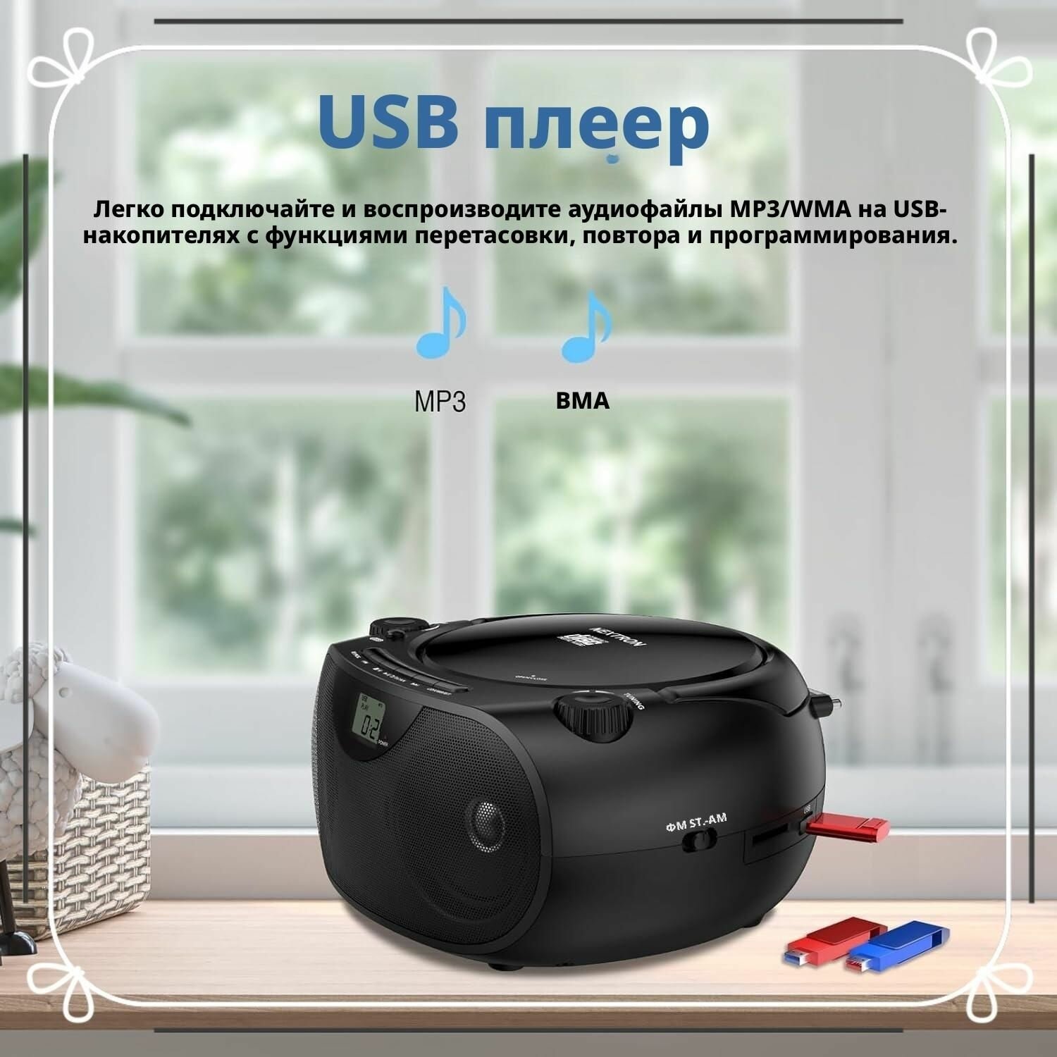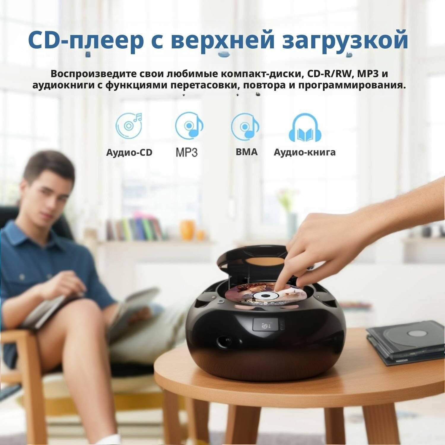 Портативный CD-плеер "Boombox", с Bluetooth, с дисплеем, верхняя загрузка, пластик интересное: