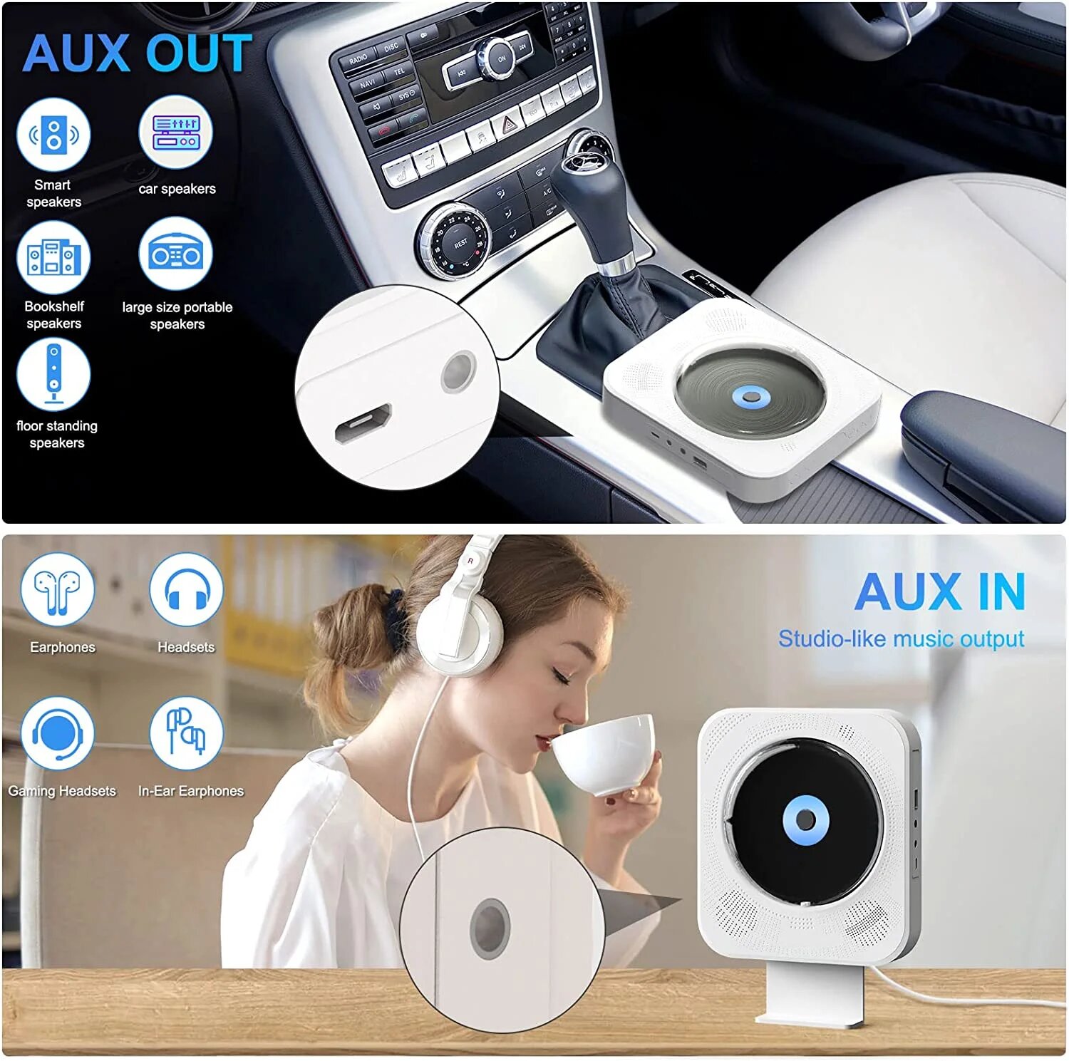 Купить CD-плеер с динамиками Hi-Fi, Bluetooth-плеером, USB-портом/FM-радио/разъемом Aux, компактный белый CD-плеер для дома
