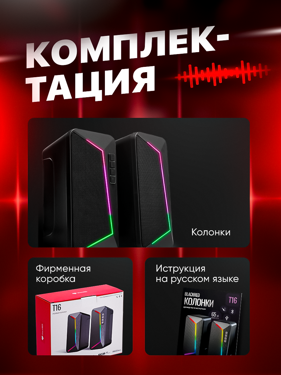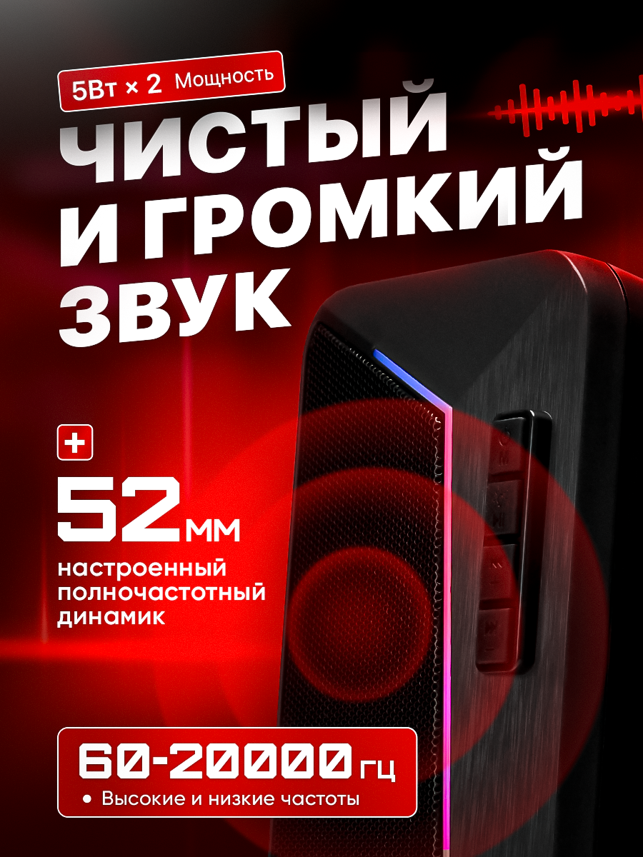 Колонка для компьютера ноутбука проводная usb с подсветкой, саундбар BlackRED
