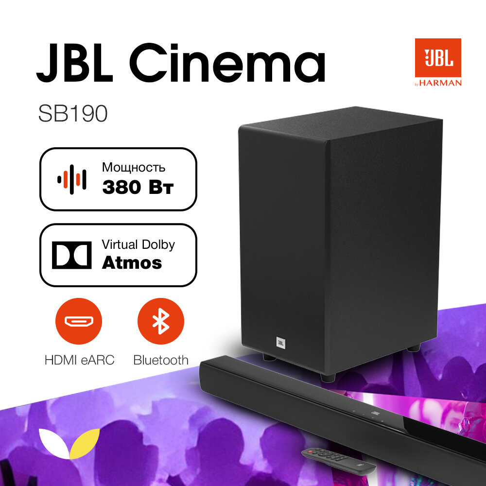 Саундбар JBL Cinema SB190, с сабвуфером, 2.1 звук Dolby Digital, черный корпус интересное: