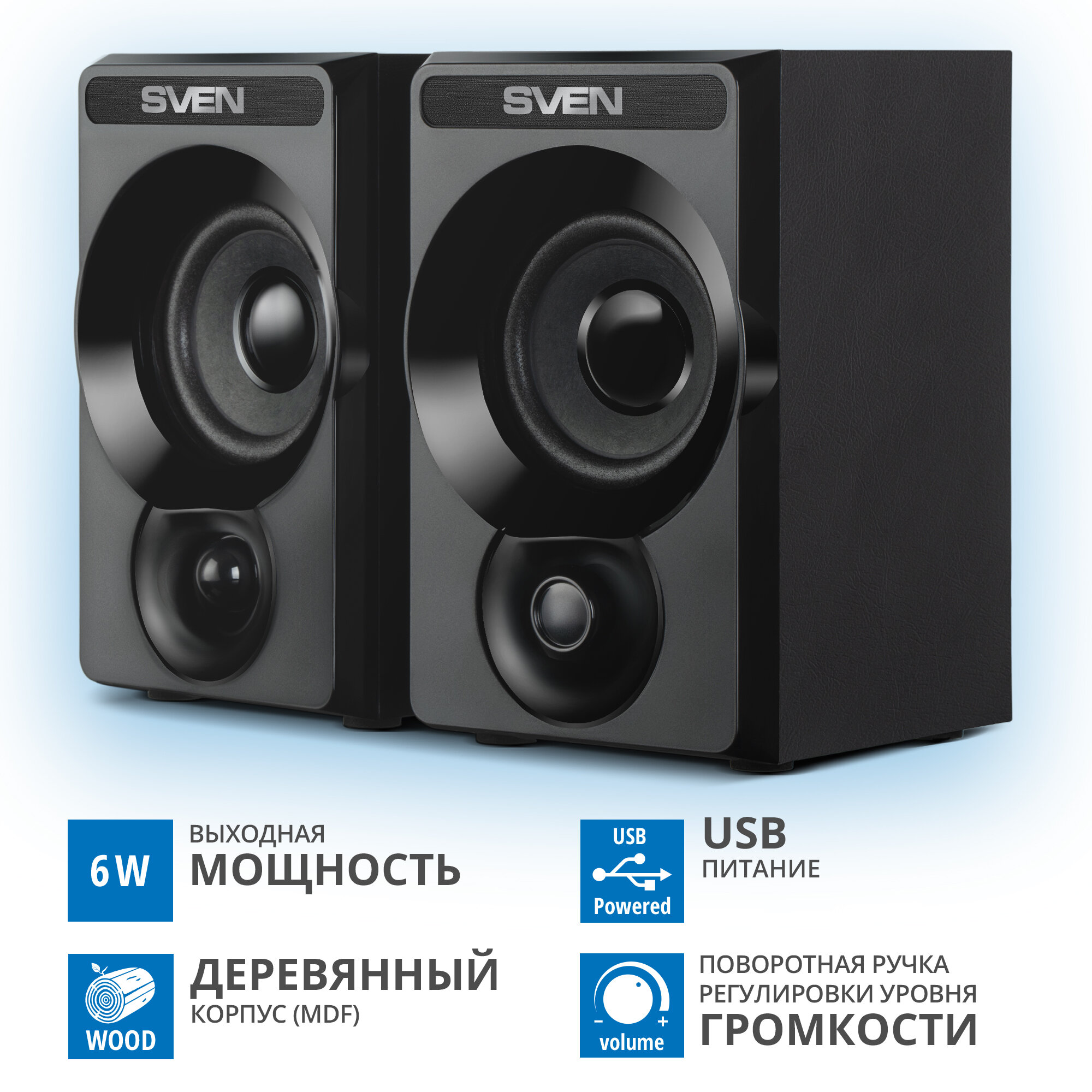 Проводные компьютерные колонки 2.0 SVEN SPS-535 в деревянном корпусе, 6 Вт интересное: