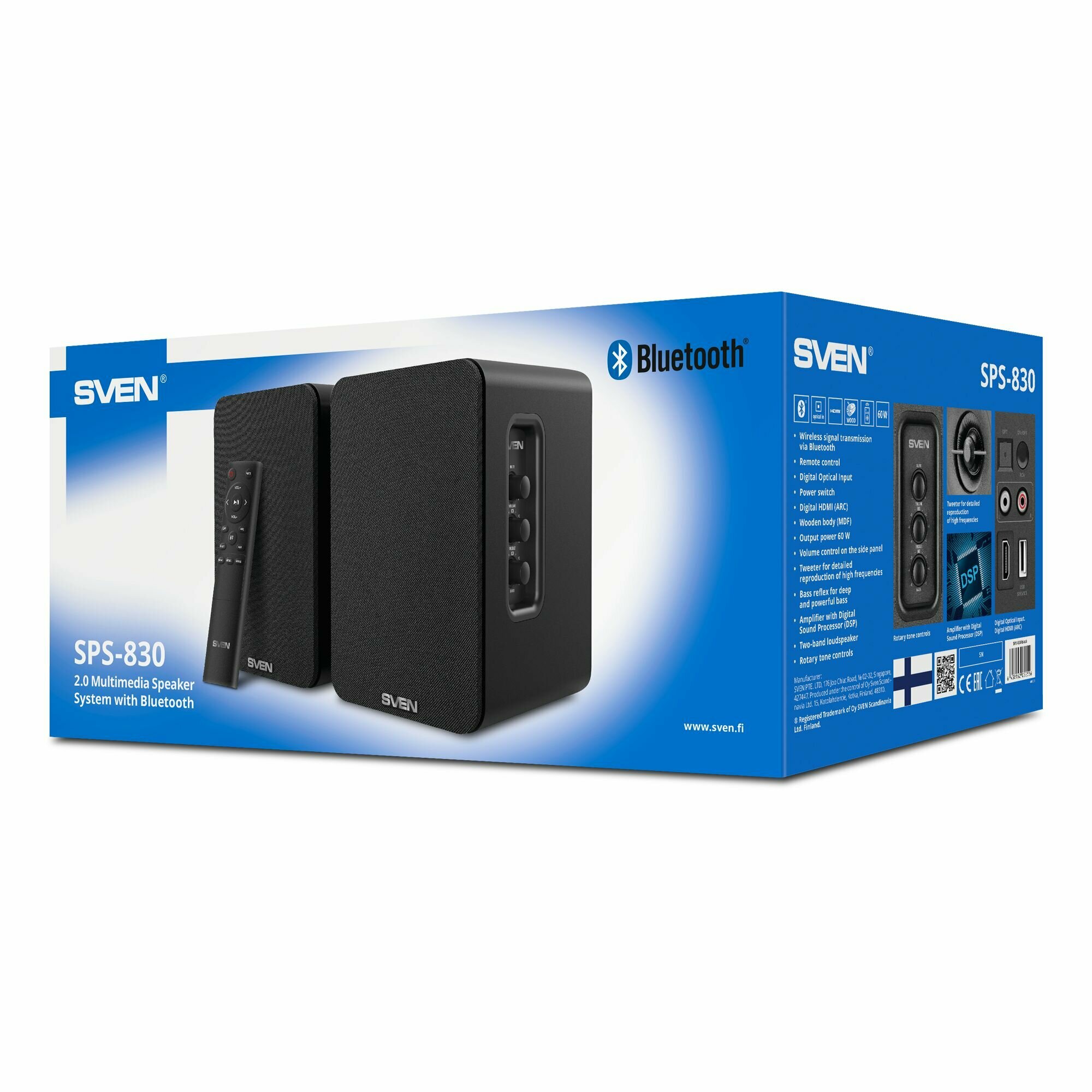 Купить SVEN SPS-830 Проводные музыкальные колонки / Акустическая система с Bluetooth (HDMI (ARC), оптический вход, пульт ДУ), 60 Вт, черные