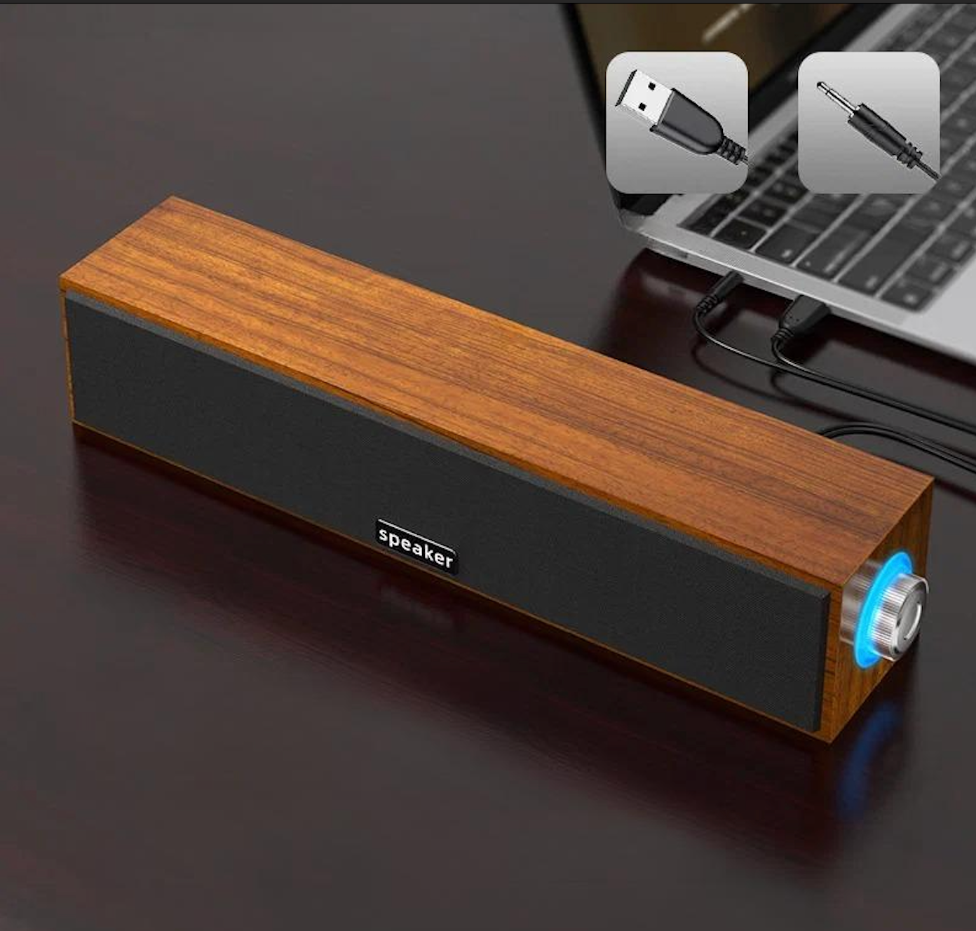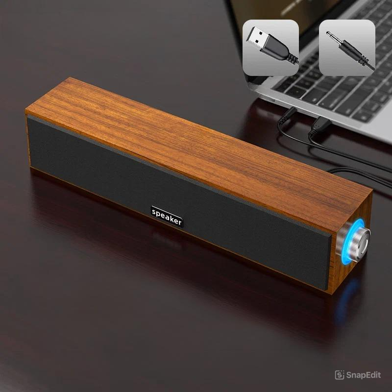 Колонка саундбар для компьютера с двумя динамиками и сабвуфером проводная E1090 без Bluetooth коричневый