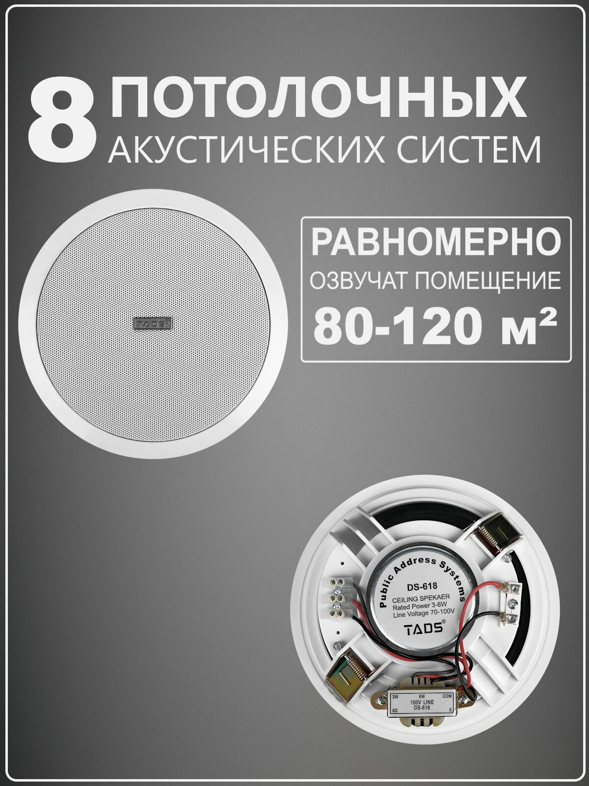 Потолочные колонки 8 шт в комплекте с усилителем MusicTone MT07-8 интересное:
