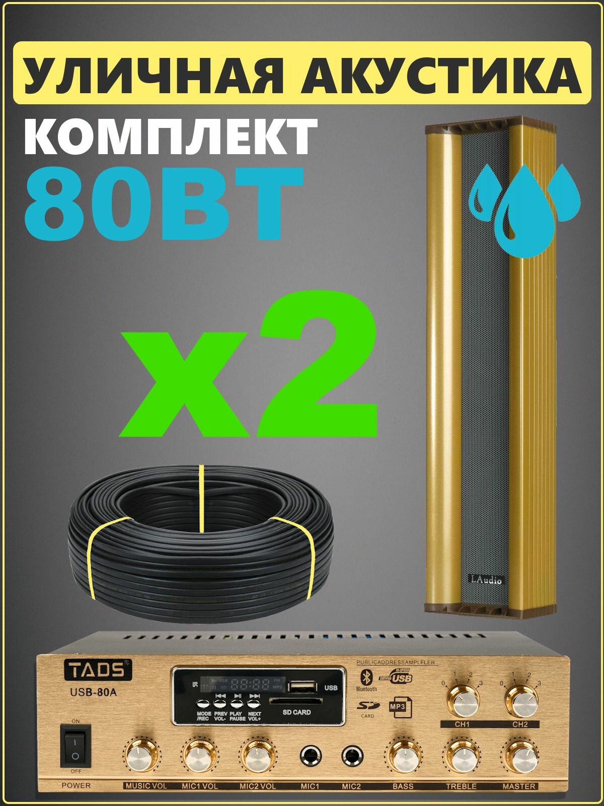 Уличная акустика комплект с усилителем и кабелем усилителем MusicTone OMT220