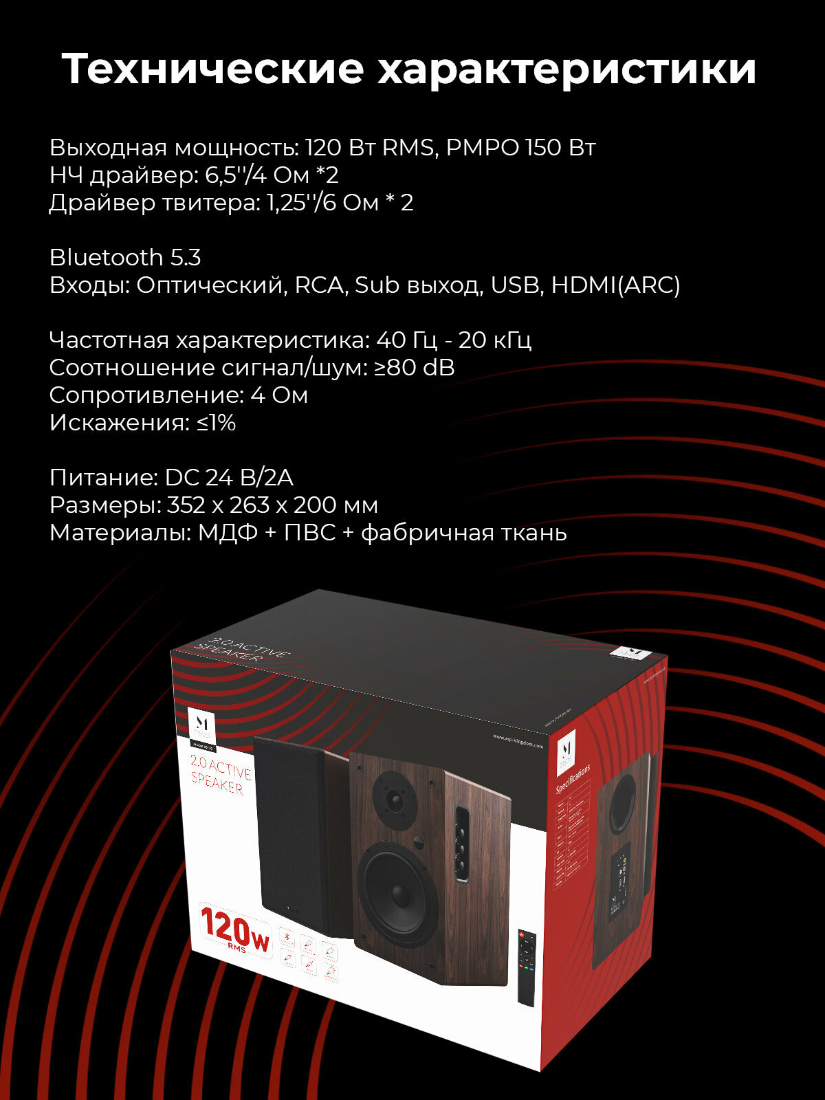 Активная акустическая система 2.0 Music Public Kingdom BS120, Bluetooth 5.3, мощность 120 Вт интересное: