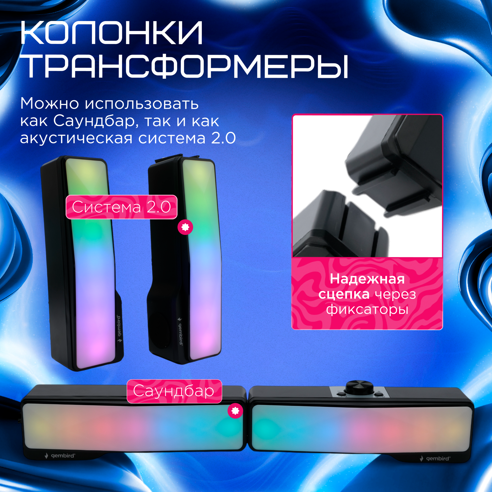 Акустическая система-трансформер 2.0 Gembird черный 10Вт пластик RGB подсветка SPK-620 интересное: