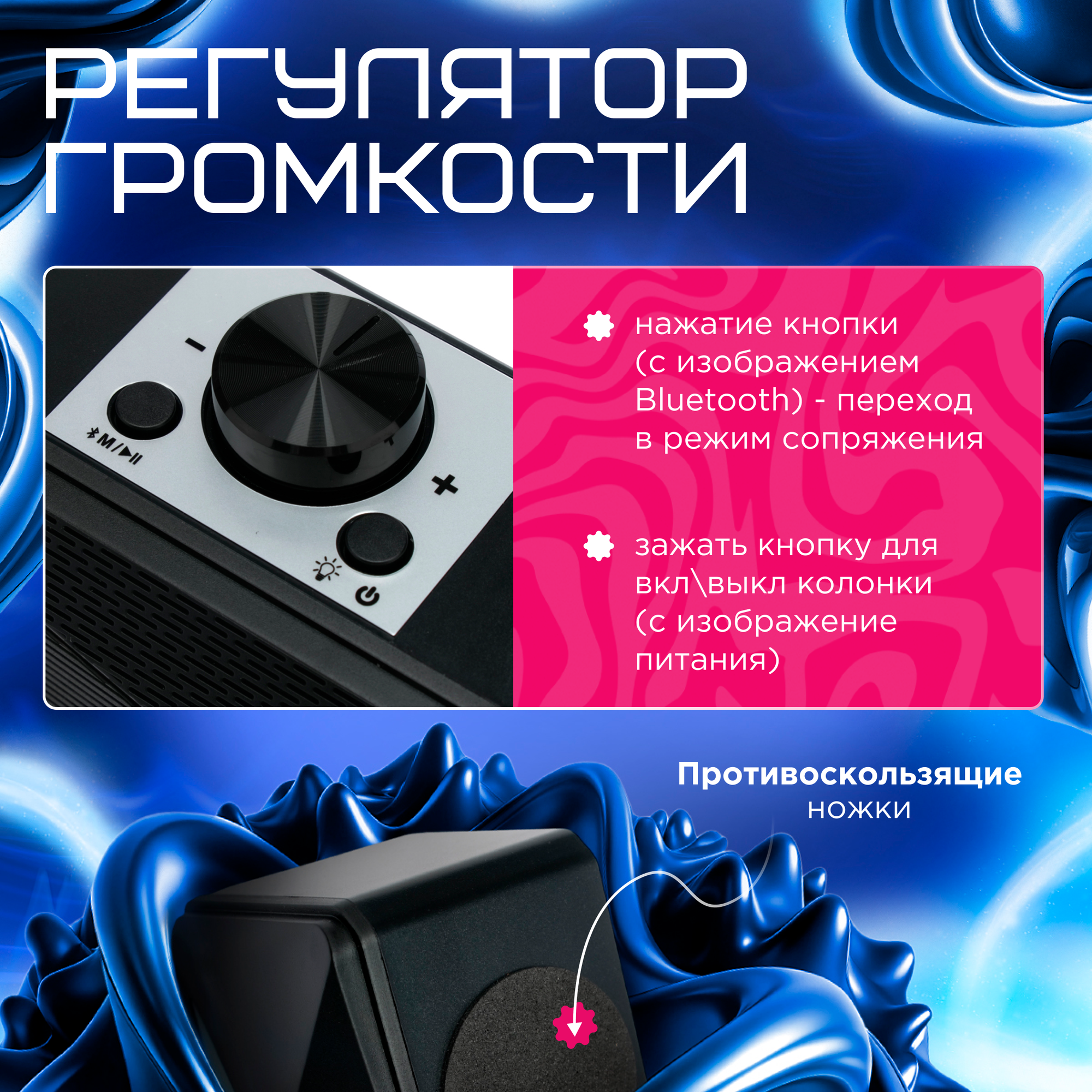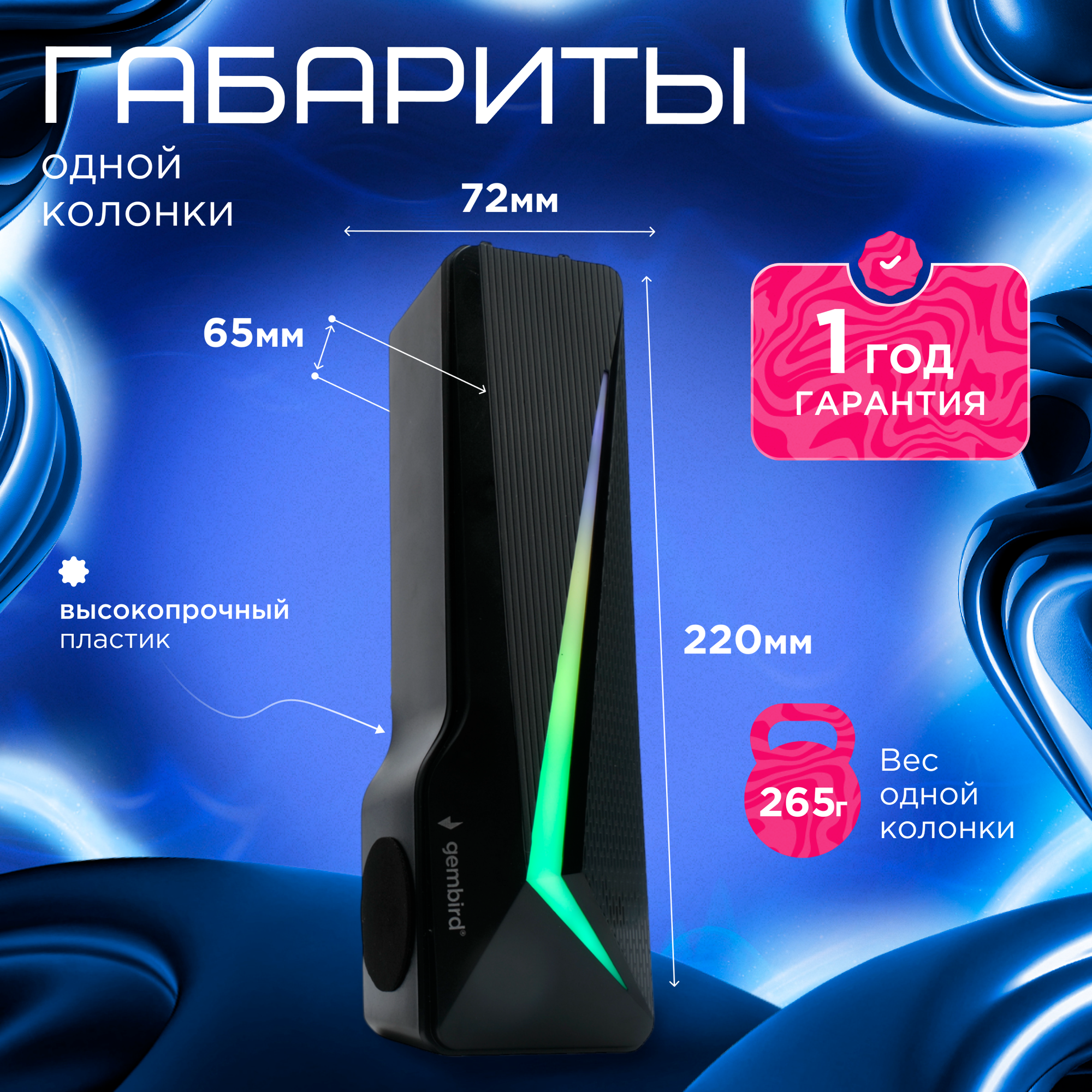 Акустическая система-трансформер 2.0 Gembird черный 10Вт пластик RGB подсветка SPK-615 интересное:
