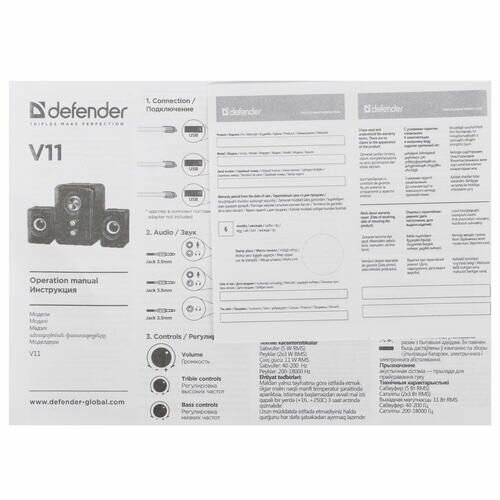 Купить Колонки компьютерные DEFENDER V11, 2.1, 11 Вт, пластик, черные, 65111
