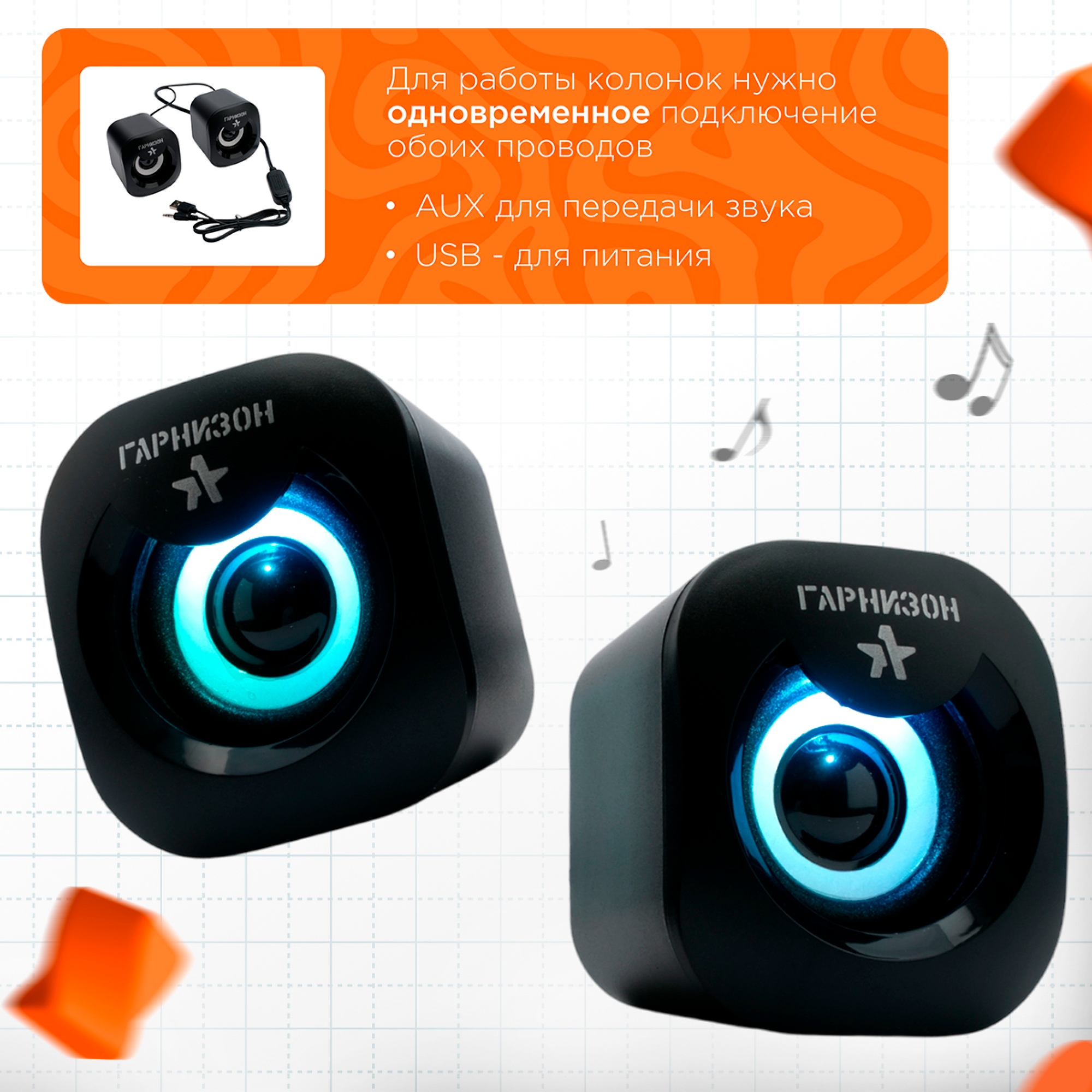 Акустическая система 2.0 Гарнизон черный 6Вт пластик LED подсветка GSP-120 интересное: