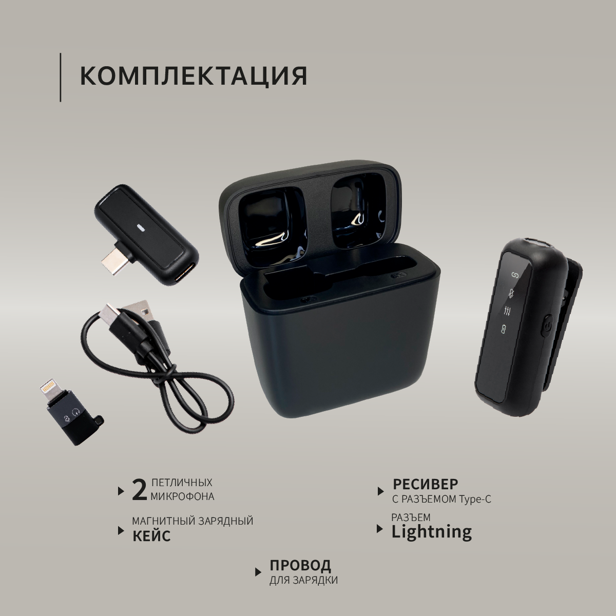 Микрофон петличный беспроводной, с шумоподавлением, петличка, для мобильного телефона, разъем Lightning, для Iphone, черный, 2шт