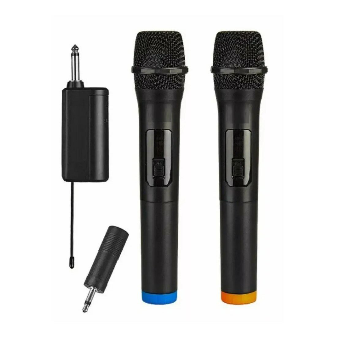 Купить Беспроводной микрофон, микрофон для караоке беспроводной, 2 микрофона, комплект, приемник, переходник AUX, черный