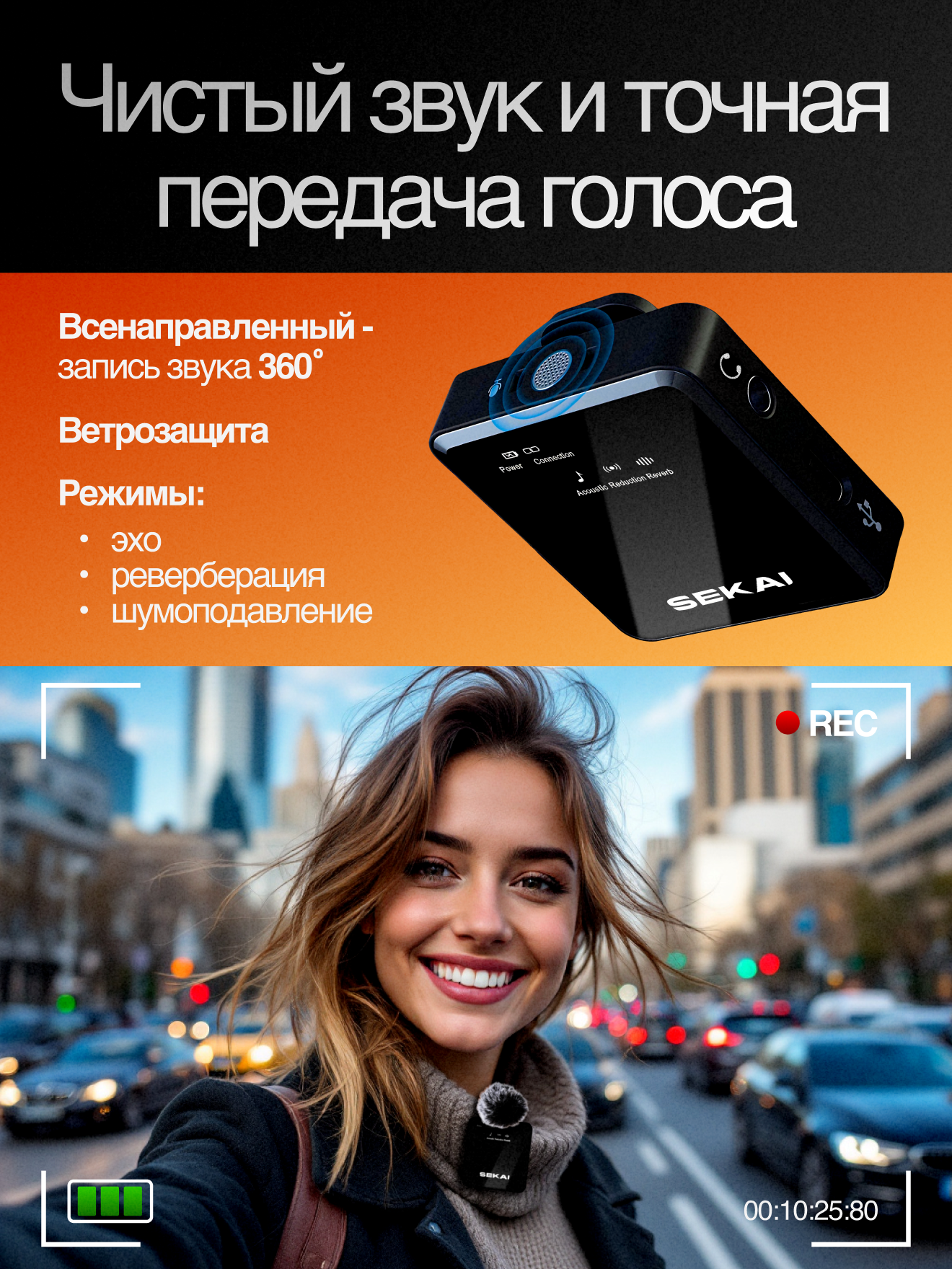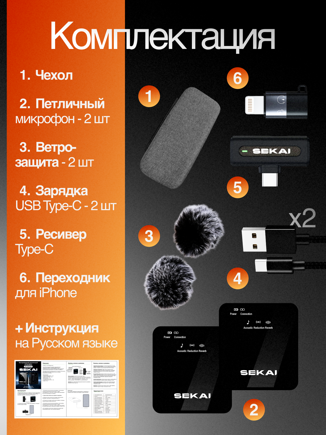 Микрофон петличка SEKAI, конденсаторный, беспроводной, шумоподавление интересное: