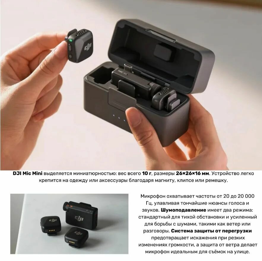 Беспроводной микрофон DJI Mic Mini 2 TX + 1 RX, черный, шумоподавление