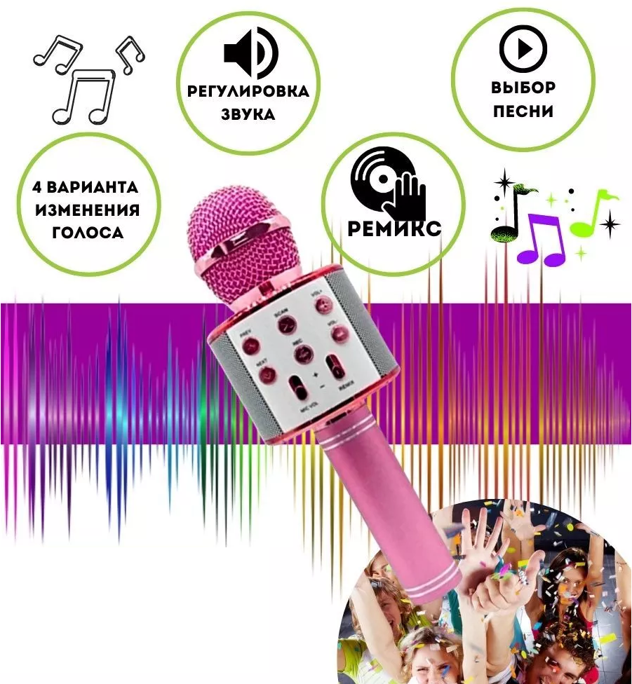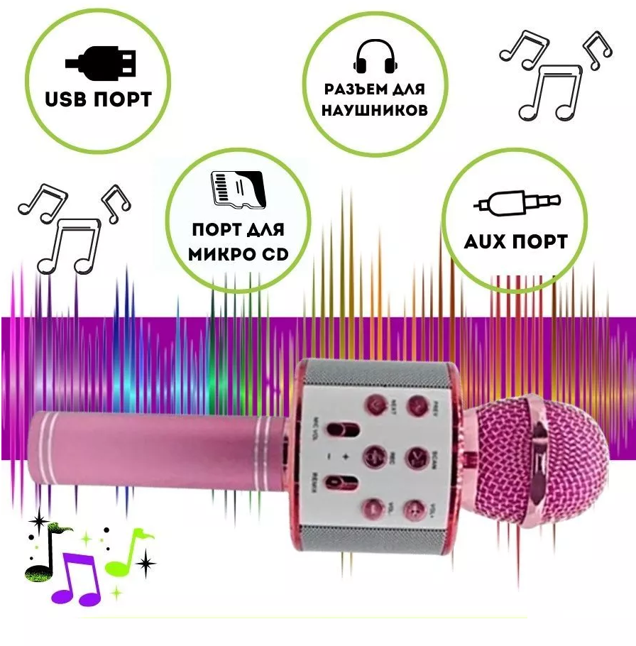 Микрофон караоке, беспроводной детский, колонка, эхо эффект, розовый интересное: