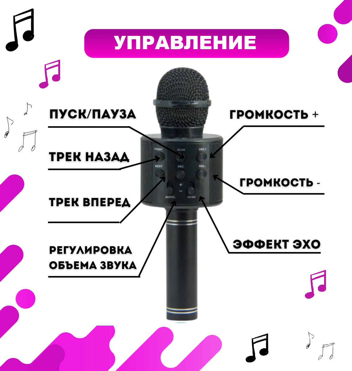 Купить Микрофон караоке "Детский", с Bluetooth, для вокала/караоке/стриминга, черный