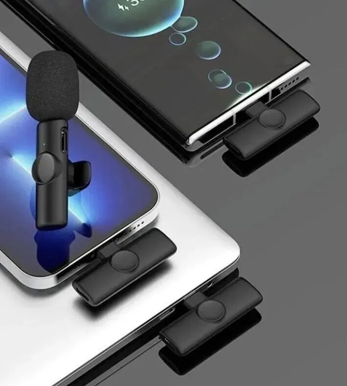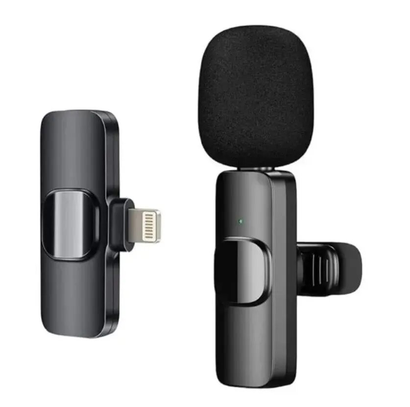 Микрофон петличный беспроводной, с шумоподавлением, петличка, для мобильного телефона, разъем Lightning, для Iphone, черный, 2шт