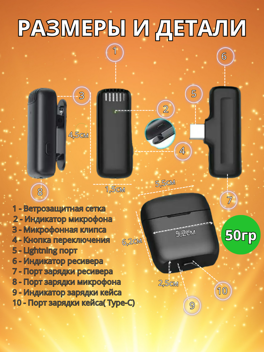 Микрофон беспроводной Петличка для iphone 2 шт интересное:
