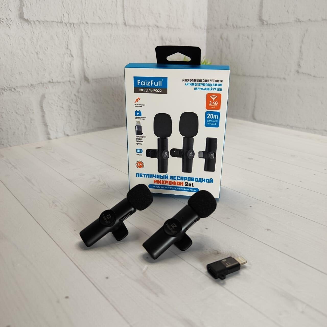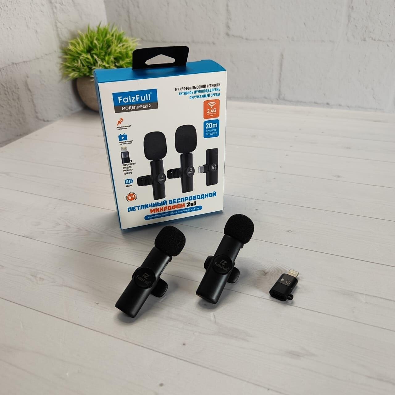 Микрофон петличный FQ 22, 2шт. беспроводной с шумоподавлением, петличка, для мобильного телефона, устройства с Lightning и Type C 2шт интересное: