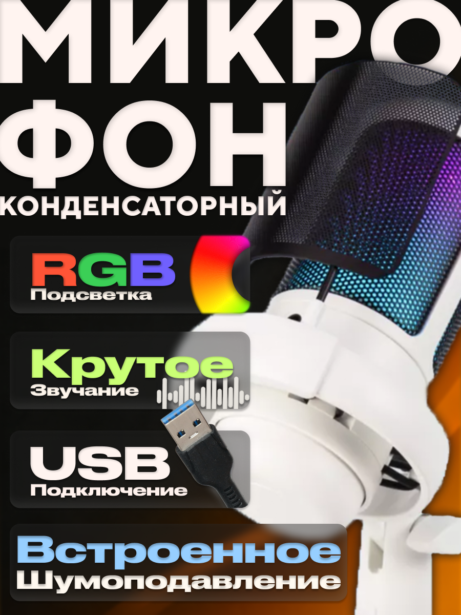 Игровой микрофон для стримов, конденсаторный, кардиоидный, USB Type-C интересное: